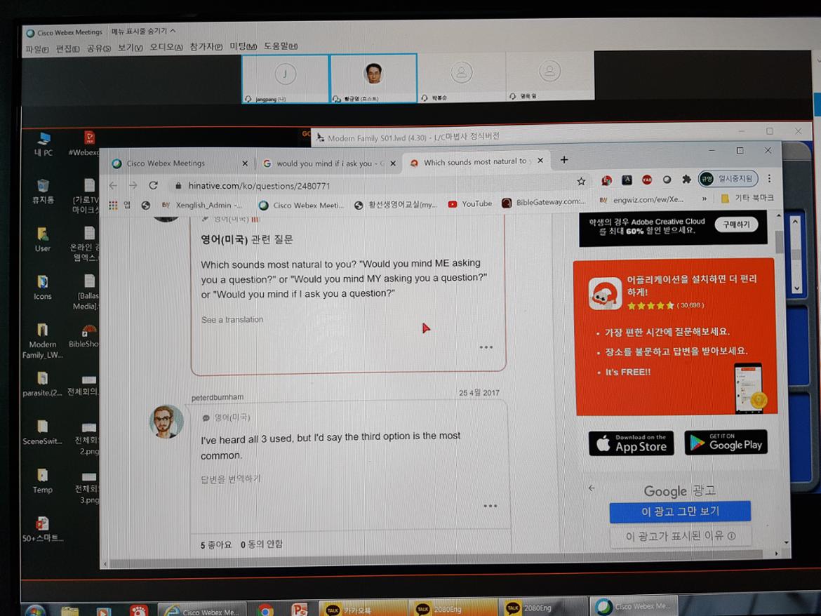 EngWiz app을 이용하여 Modern Family 1화중 2/3부분 Listening, Speaking 예습