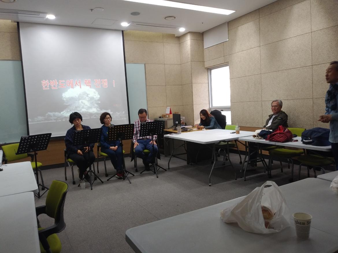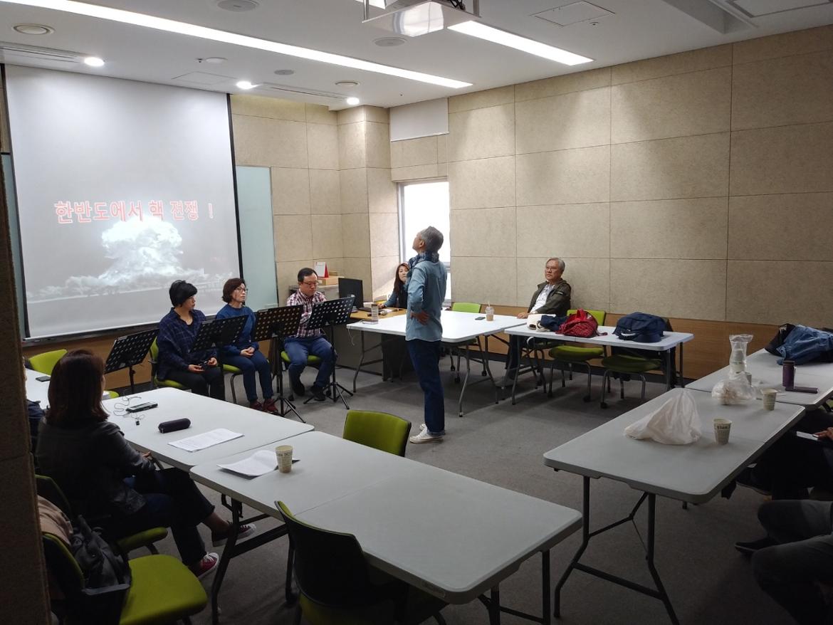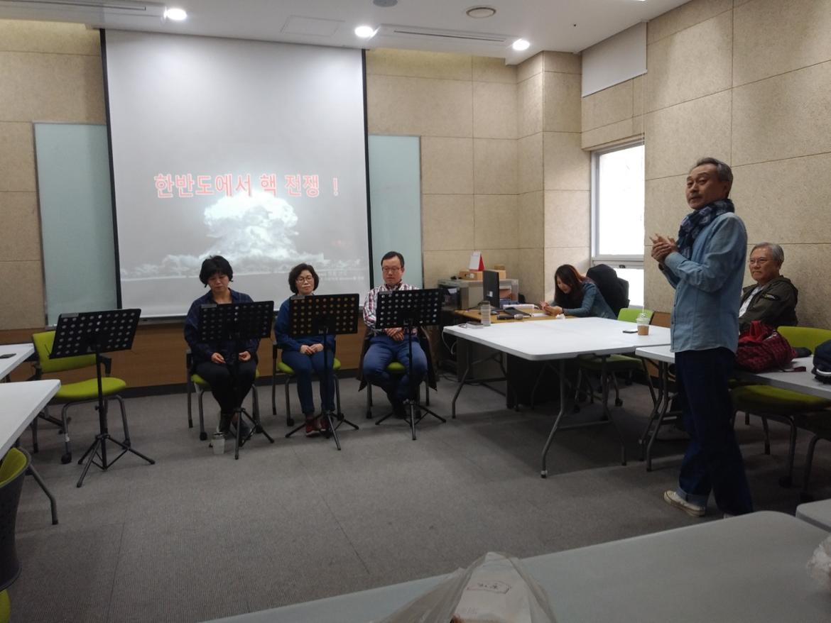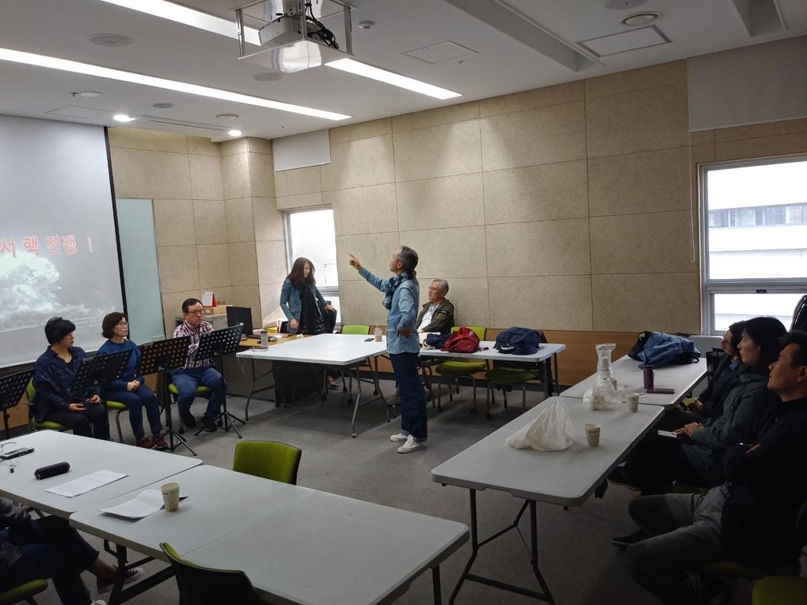 청소년을 대상으로 한 평화낭독극을 하루 앞두고 리허설에 열중하는 막독극회원님들!