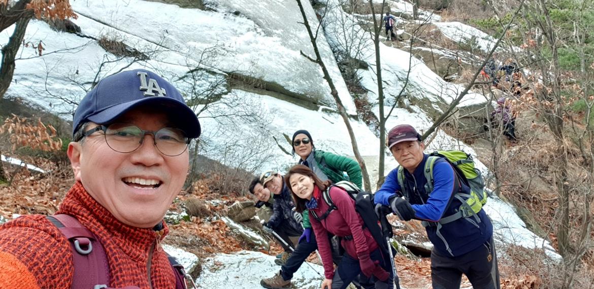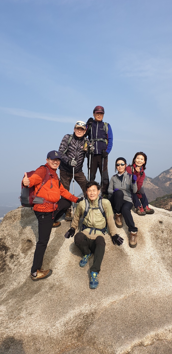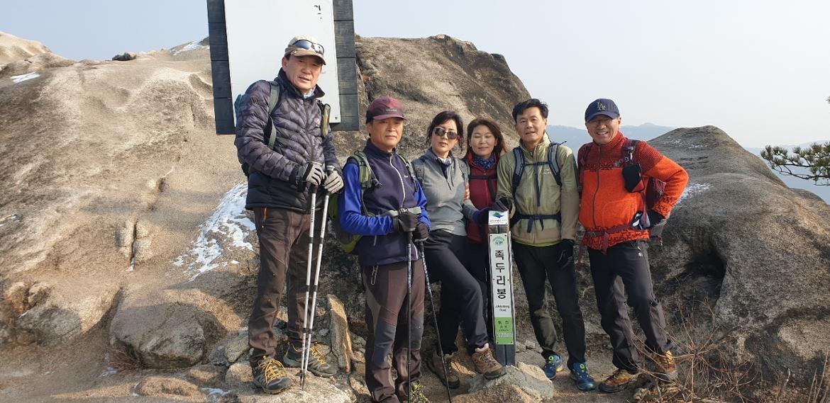 겨울애게 행사 등으로 1주 연기하여 22일 회원들의 주근거지와 가까운 북한산 일대 족두리 능선 ㅡ 족두리 봉 ㅡ구기터널 입구 ㅡ 불광역 일원으로 다녀왔습니다.