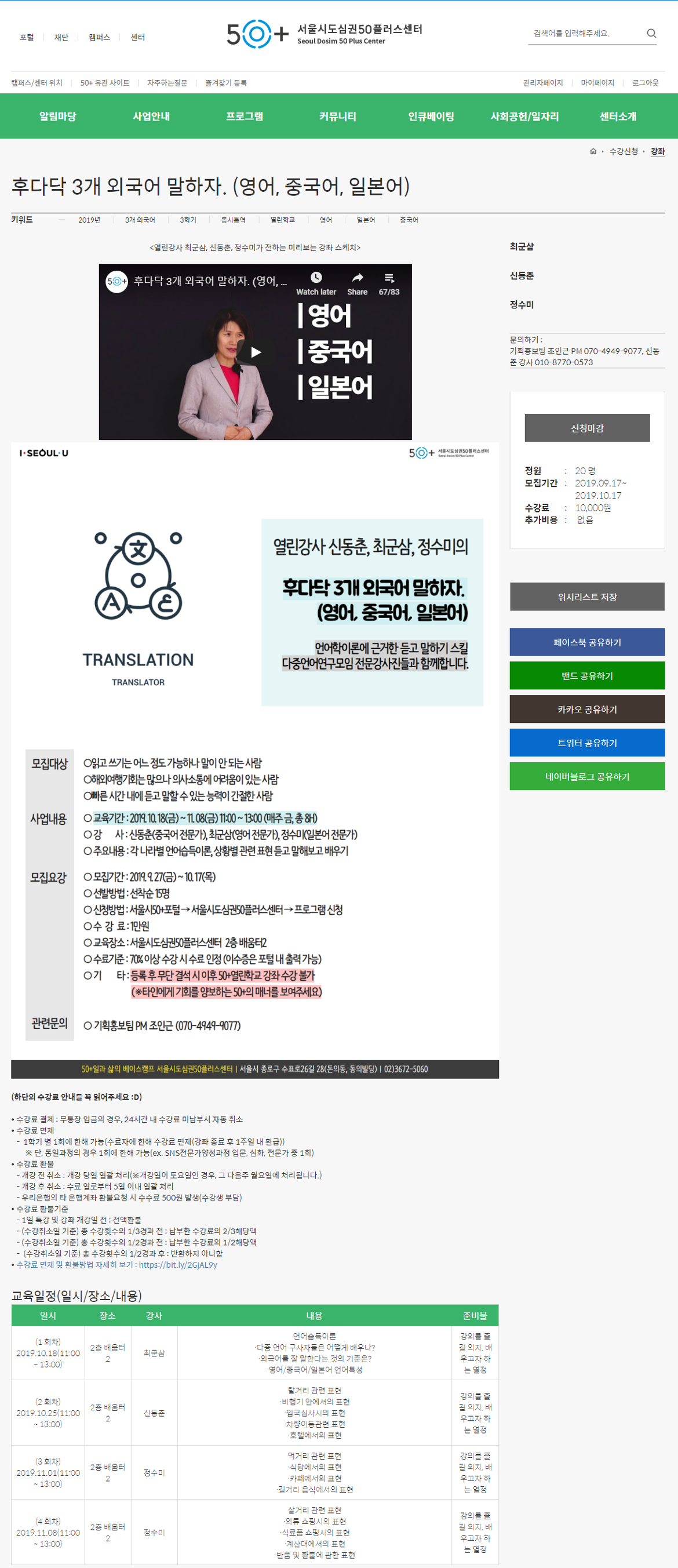 ■ 일시 : 2019년 10월 18일 ~ 11월 08일 매주 금요일 11:00~13:00