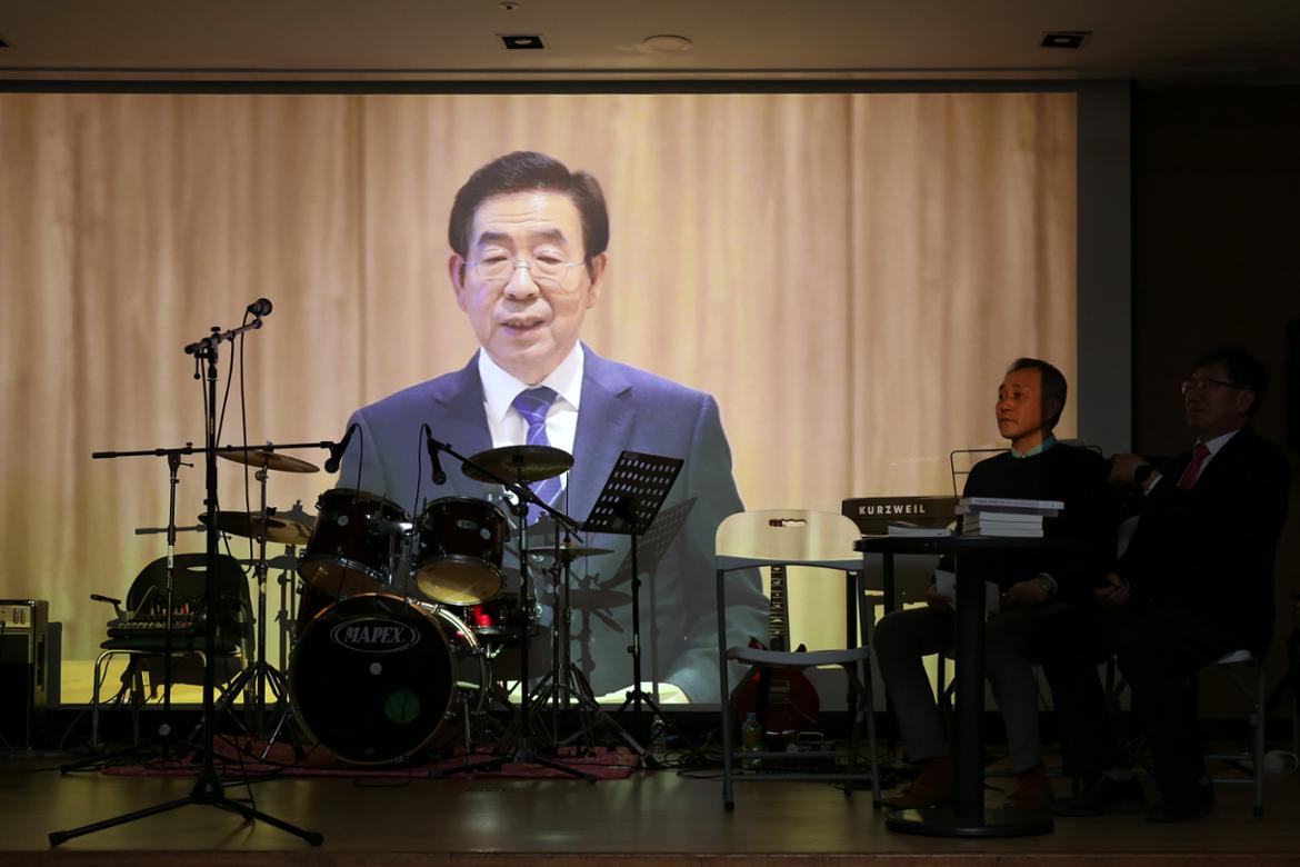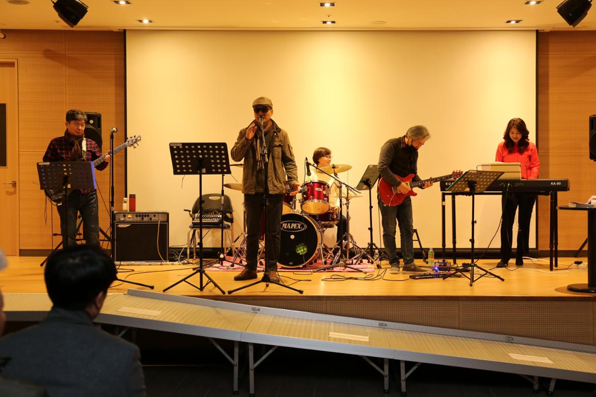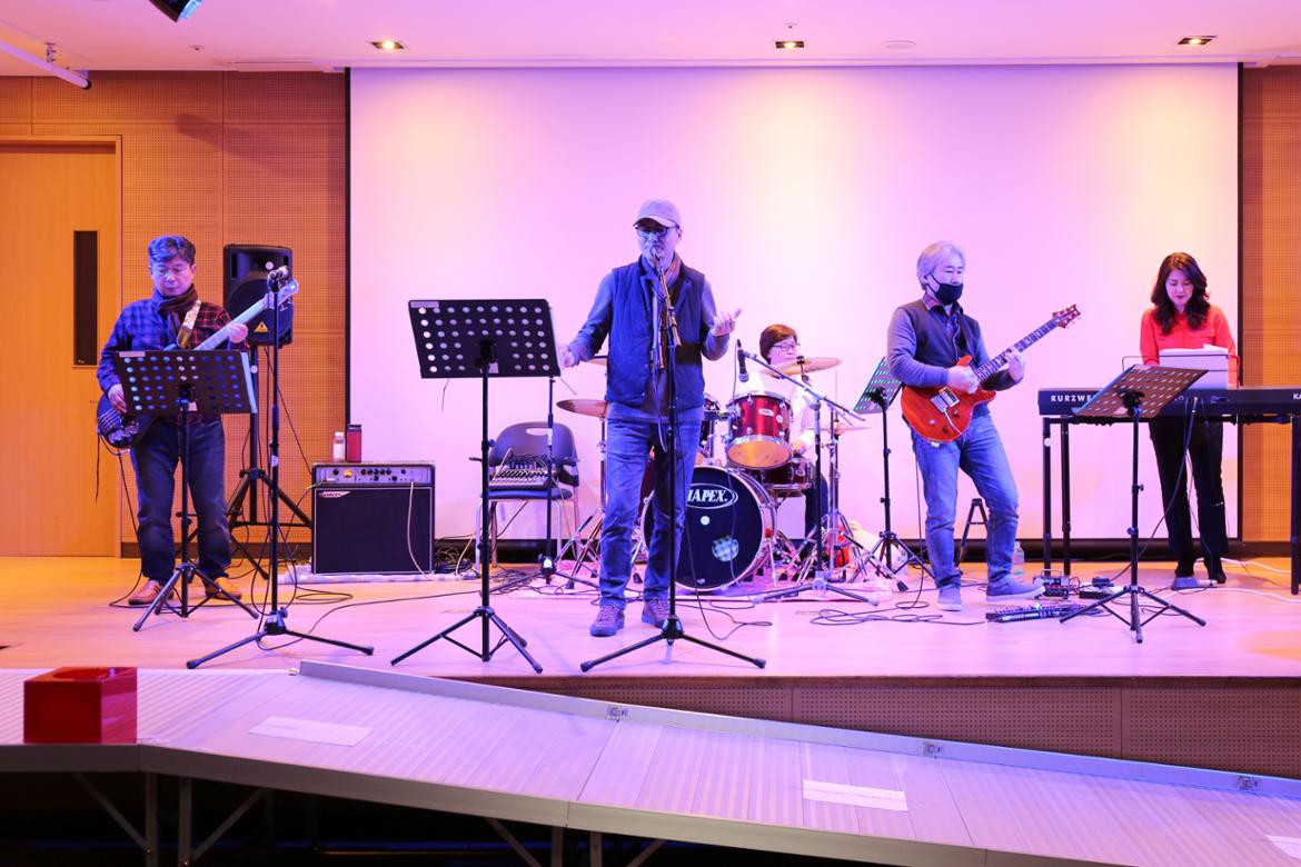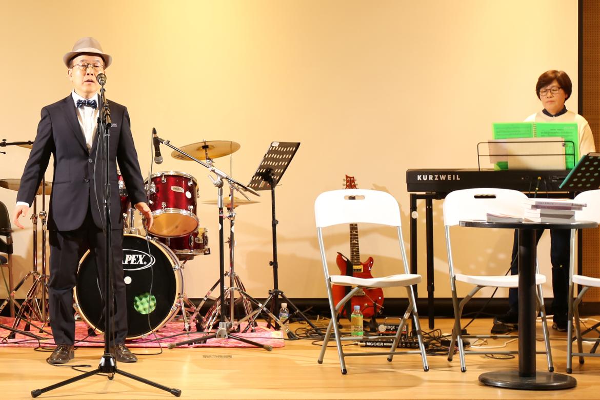 손준호님의 독창으로 막을 올린 송년콘서트는 박원순 서울시장의 축하영상, 정광필 인생학교 학장의 축사에 이어 『아름답고 위대한 근심』의 저자인 박호영님과의 북토크가 30분간 이어졌습니다. 박호영 저자의 따님인 뷰티크리에이터 씬님과 유머일번지에 나왔던 개그맨 정명재님도 함께 자리하여 더욱더 다양하고 재미난 북토크가 되었습니다. 북토크 중에는 책의 내용과 아름다운 시로 50+막독극 커뮤니티의 낭독이 더해졌습니다. 이어진 날꽃뺀드의 공연 콘셉트는 레트로 분위기 물씬 나는 트로트! 유영남님과 권옥순님의 보컬이 빛을 발휘한 신나는 무대였습니다. 50+공갈단 공식 사회자 박일호님의 대담과 진행은 역시 기대를 저버리지 않는 매끄러움과 노련함을 보여주었습니다.