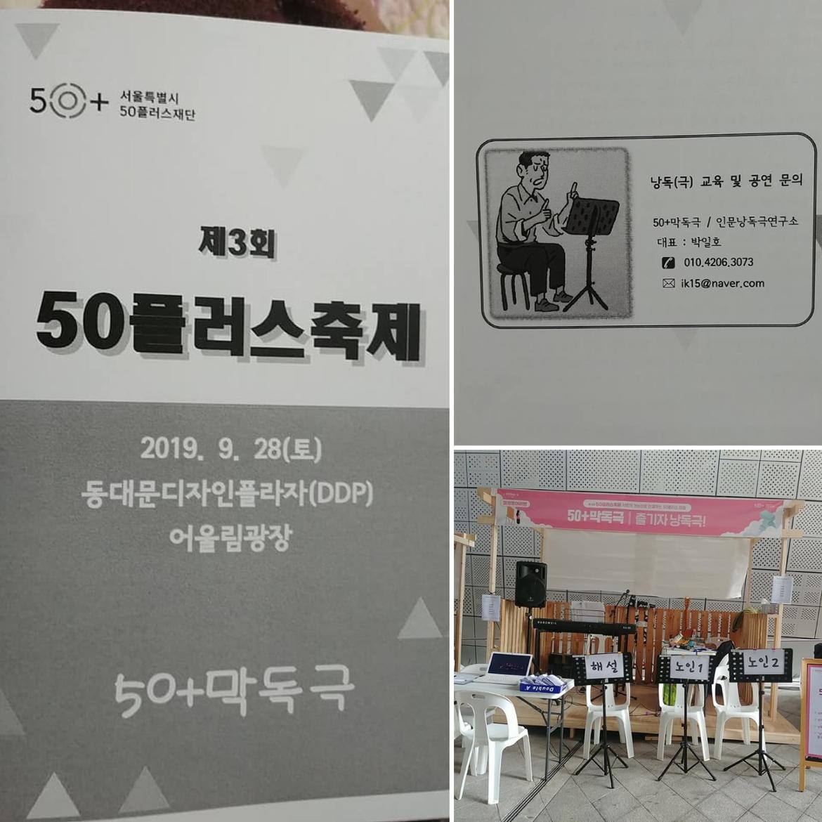 9월 28일(토) 동대문 DDP 어울림광장에서 <제3회 50플러스 축제>가 열렸습니다. 저마다의 50플러스 커뮤니티가 다양한 활동을 선보이는 자리였는데 우리 '50+막독극' 커뮤니티도 낭독극 체험 부스를 운영했습니다.
