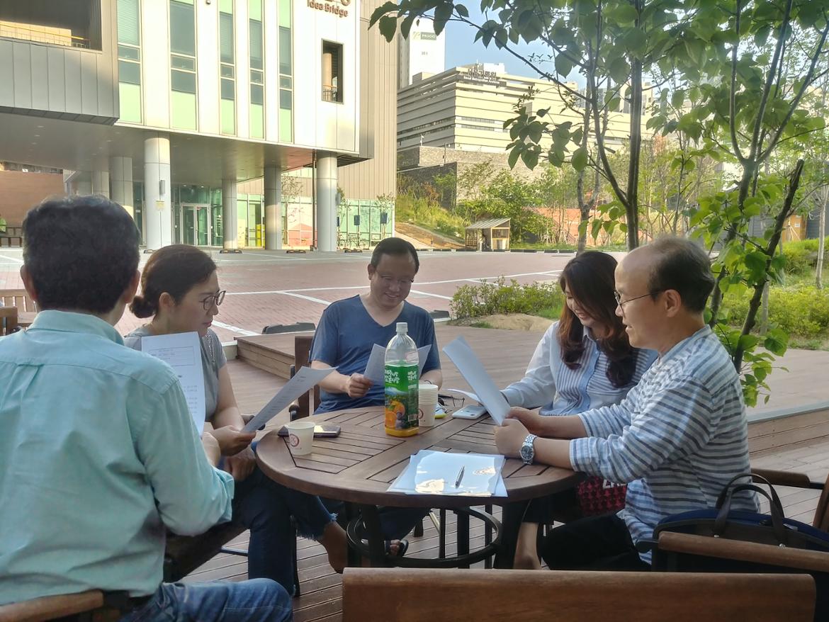 ■ 주요내용 : 혁신파크 광장에서 30차 정기모임을 가졌습니다. 날씨는 더웠지만 나무 그늘아래에서 살살 부는 바람을 느끼며 낭독하는 신선한 체험! 역시 입만 있으면 어디든 무대가 되는 장점을 가지고 있는 낭독극입니다^^ 오늘 낭독한 <나를 슬프게 하는 것들>은 제목과는 달리 읽다가 계속 웃음이 터지는 재밌는 글이었습니다. 김용택시인의 시 <6월>도 윤독했고요. 끝나고 나서는 치맥으로 마무리!