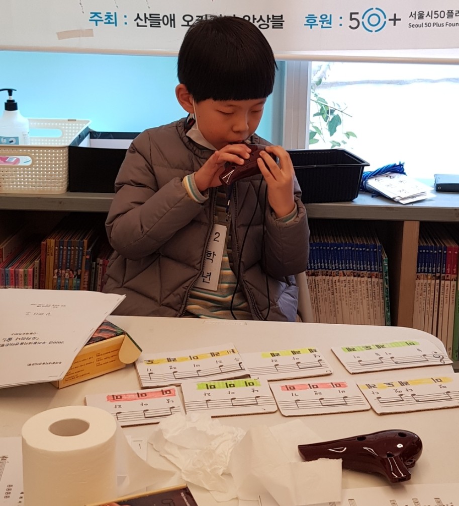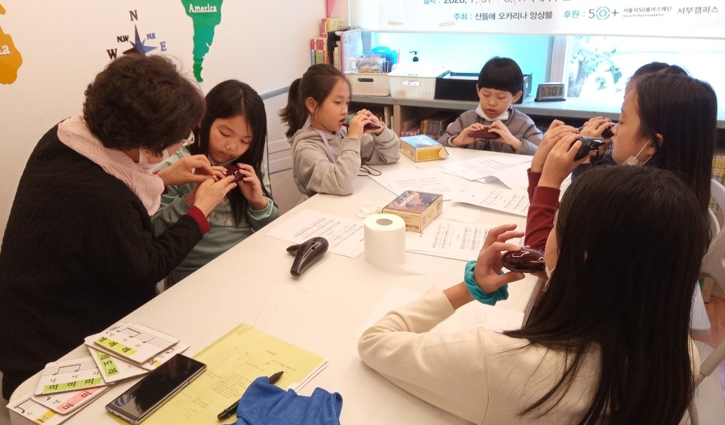 - 서부캠퍼스 프로젝트인 우리동네 키움센터 불광2호점 어린이들에게 오카리나 교육