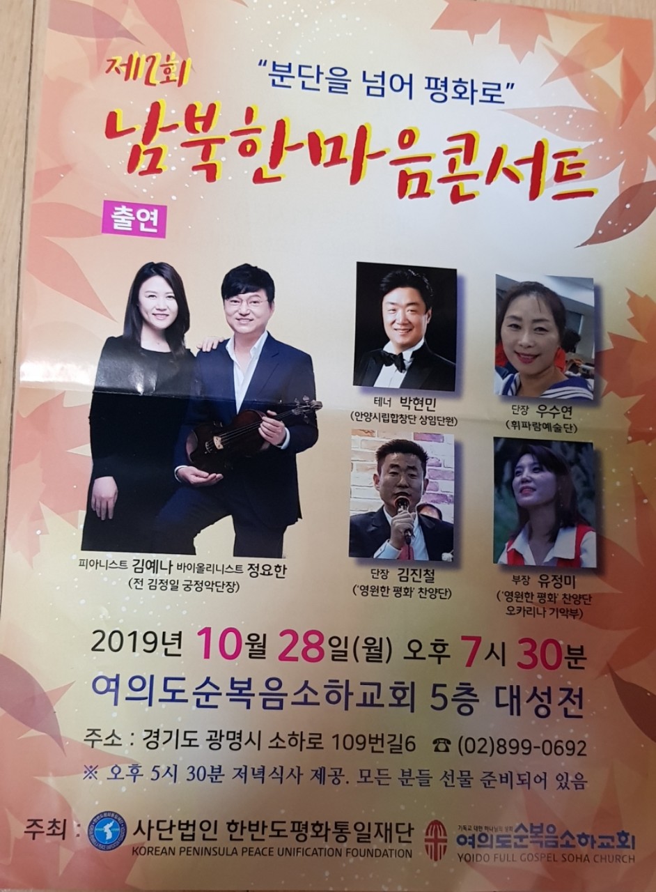 - 남북한마음 콘서트에 참석하여 연주하고, 탈북민을 이해하는 시간이 되었습니다