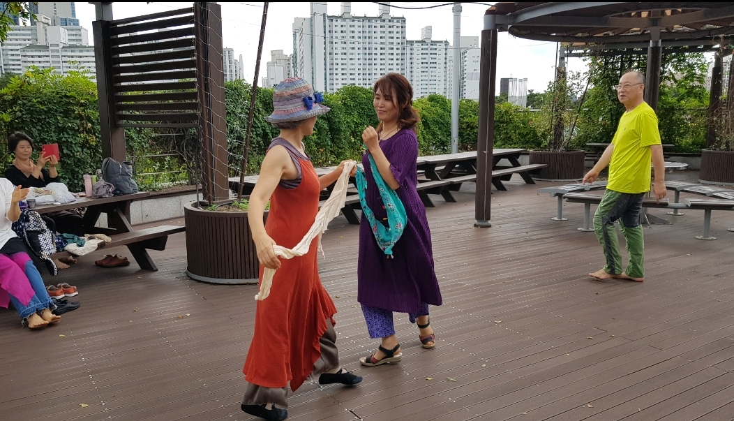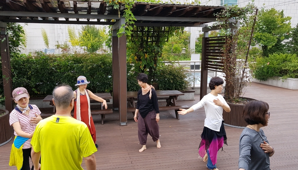 - 다리가 아프심에도 불구하고 써클댄스를 함께하고 싶어서 어깨춤을 추시는 모습을 보며 좀더 방법을 통해 평화의 둥근춤을 나눌수 있는 기회를 만들자는 의견이였습니다