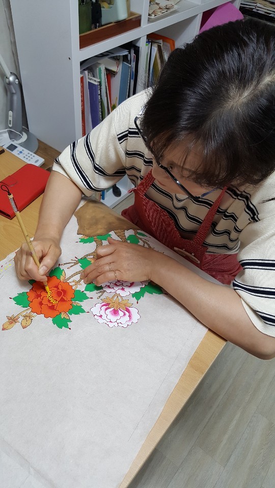 처음의 부담감은 조금씩 안도감으로 바뀌고 색의 변화와 조화가 민화의 작품 완성도를 높여주고 있다. 고지가 멀지 않았다.