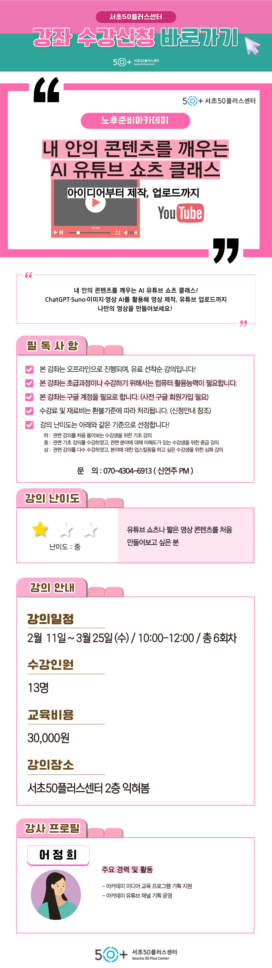 문의 연락처 서초50플러스센터 T. 02-579-5060