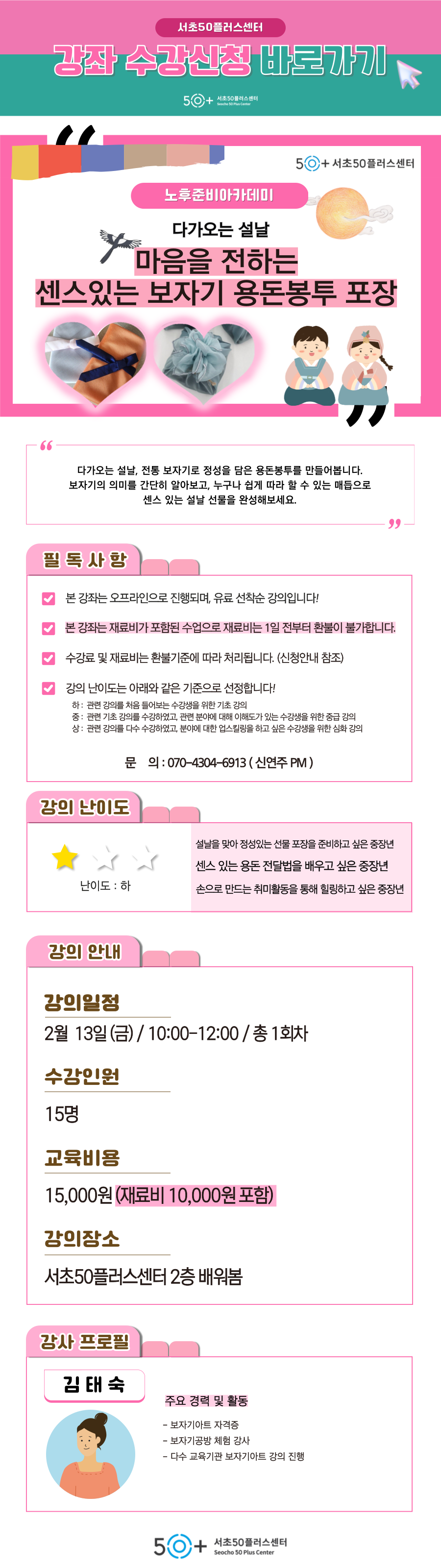 문의 연락처 서초50플러스센터 T. 02-579-5060
