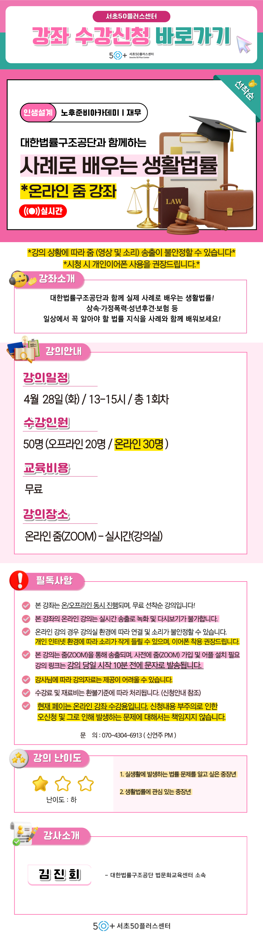 [서초][재무] [온라인] 법률구조공단공단과 함께하는 사례로 배우는 생활법률마감 D-38