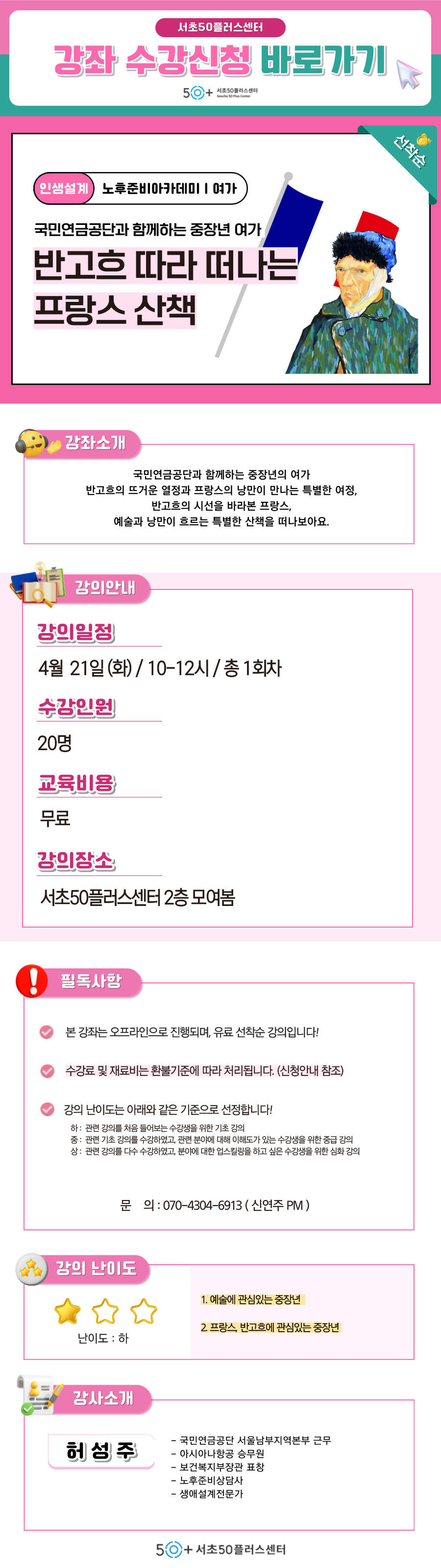 [서초][재무] 국민연금공단과 함께하는 중장년 여가 '반고흐따라 떠나는 프랑스 산책'마감 D-31
