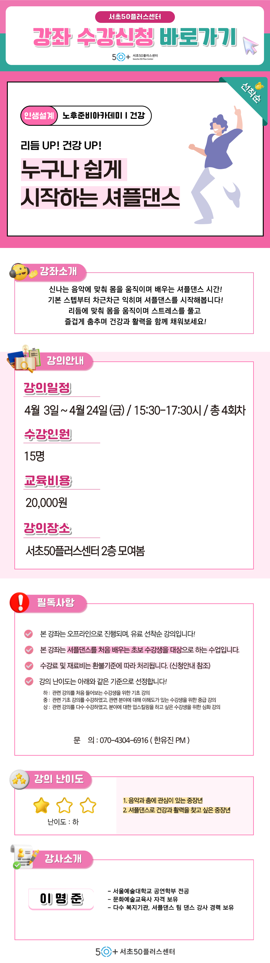 [서초][건강] 리듬UP! 건강UP! '누구나 쉽게 시작하는 셔플댄스'마감 D-13