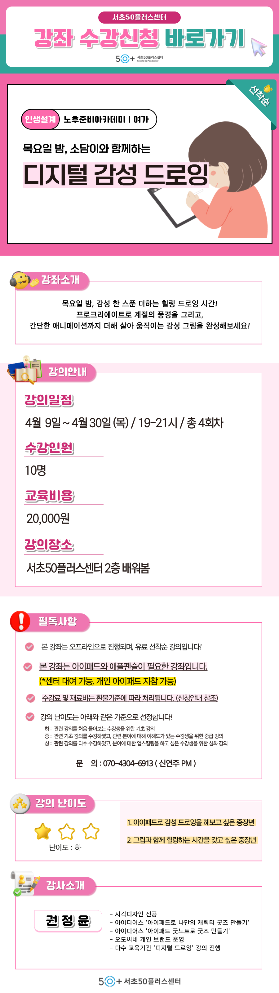 [서초][여가] 목요일 밤, 소담이와 함께하는 디지털 감성 드로잉마감 D-19