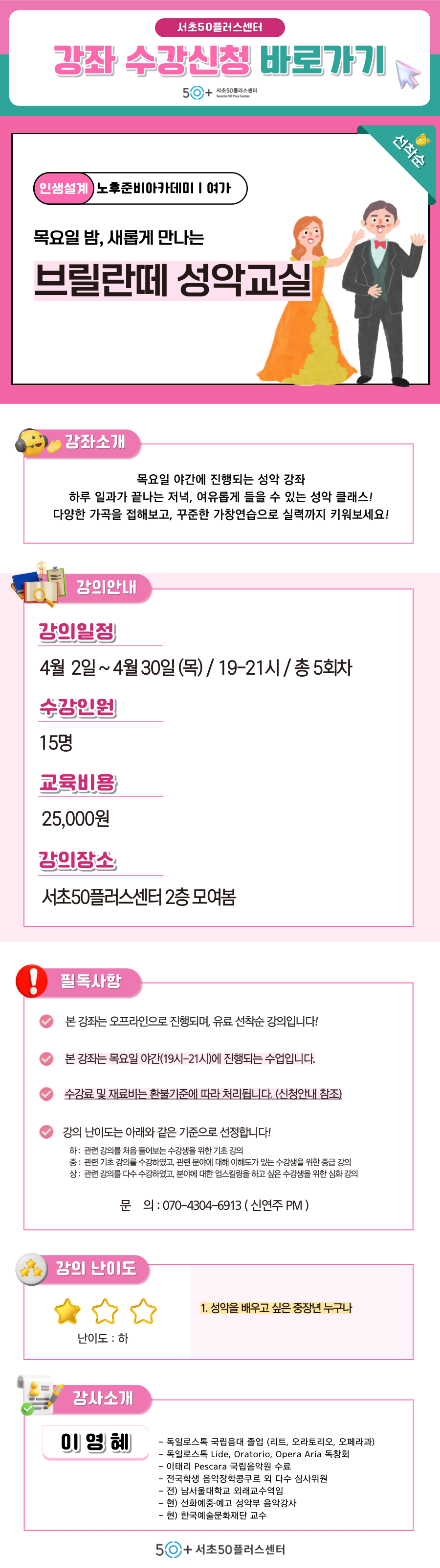 문의 연락처 서초50플러스센터 T. 02-579-5060