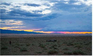 어두워지기 무섭게 검은 하늘에서 번개가 번쩍거리더니 고막을 찢을 듯 천둥이 크게 울렸다. 하늘 여기저기서 붉은 섬광이 쏟아졌다. 천둥의 신 토르가 종횡무진 하늘을 내달리고 있는 모양이었다. 몽골에 와서야 인간이 왜 토르를 만들어냈는지 이해가 되었다. 한바탕 소나기가 내리고 나자 언제 그랬냐는 듯 맑은 하늘에 별이 떴다. 일출을 보기 위해 일찍 잠자리에 들었다. 새벽에 나와보니 구름이 잔뜩 끼어 있었다. 미련을 버리지 못하고 동쪽 하늘을 계속 노려보았다. 하늘이 점점 황금빛으로 물들기 시작했다. 초원과 사구와 산을 넘어 다가오는 여명이 정말 황홀했다.
