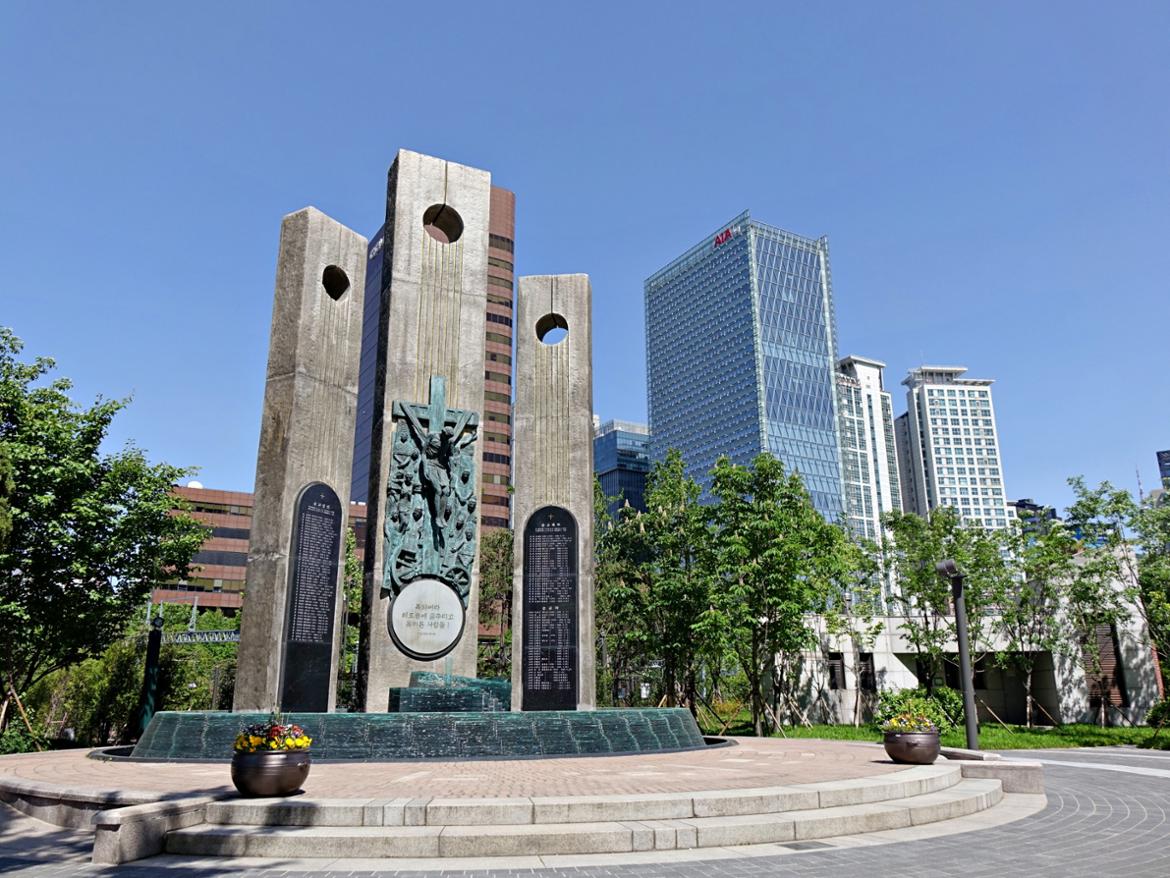 서소문 역사공원도 그 가운데 한 곳입니다. 1801년 신유박해부터 1866년 병인박해까지 103명의 천주교인이 처형된 형장으로 ‘서문 밖 순교지’로 불리던 이곳이 2019년 6월 서소문 역사공원으로 새롭게 개방됐습니다. 여기서 처형된 사람은 천주교인만이 아니었죠. 조선시대에는 사람들에게 경각심을 주고 소문을 더 확산하기 위해 사람들의 왕래가 잦은 곳에서 국사범들을 처형하곤 했는데, 당시 저잣거리였던 서소문 밖도 이러한 이유에서 1416년(태종 16) 서울의 주요 형장(刑場)으로 지정되었습니다. 광해군 때 ‘홍길동전’의 저자이자 학자였던 허균이 서자를 차별대우하는 사회제도에 반대하다 참형된 것을 비롯해 홍경래의 난과 임오군란, 갑신정변 주도자들이 이곳에서 참수되었죠. 또한 동학혁명 지도자 김개남과 동학의 2세 교조인 해월 최시형이 고난을 받은 곳으로 동학과도 밀접한 관계가 있는 장소입니다.