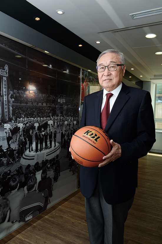 ▲서울 강남구 논현동 KBL 센터에서 공을 들고있는 KBL 김영기 총재.