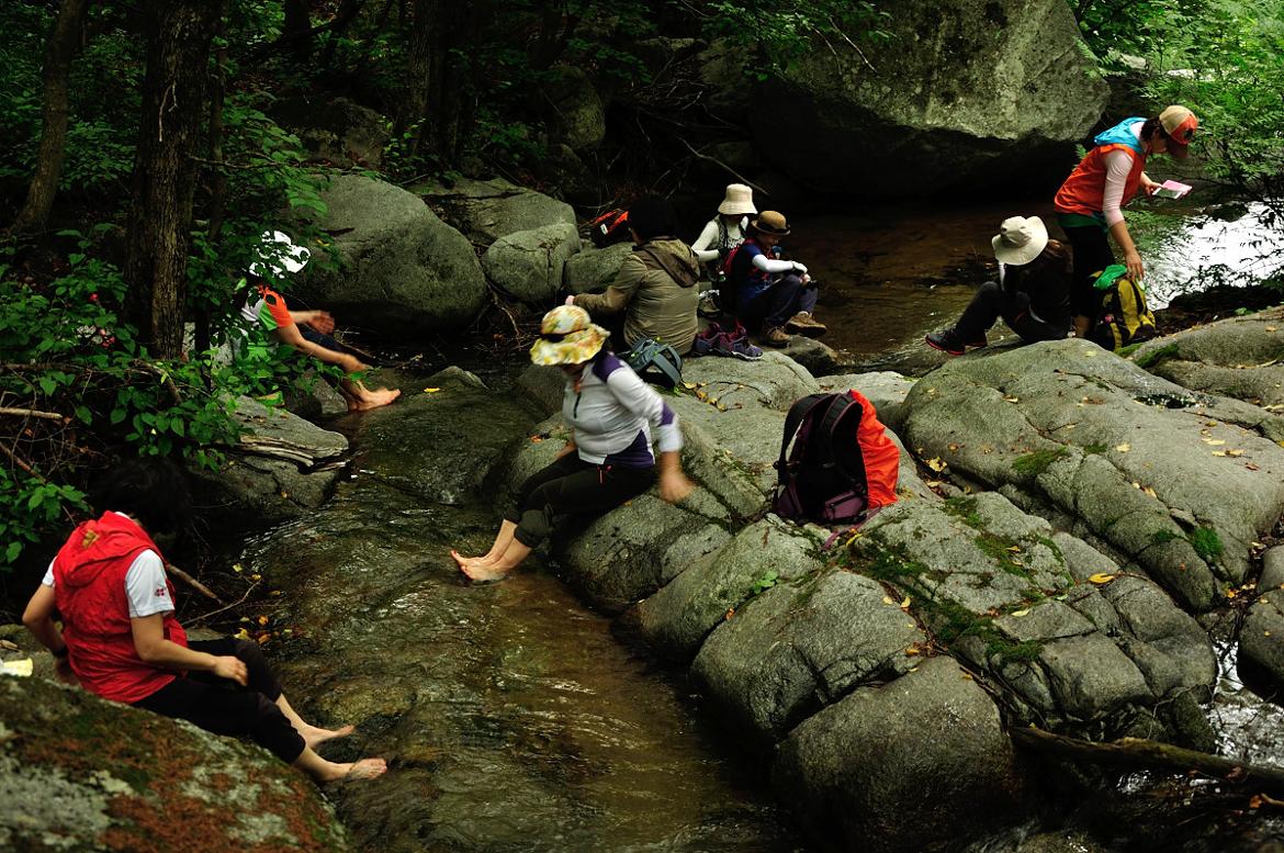 차가운 물, 상쾌한 물소리, 쉬어갈 수 있는 그늘과 녹음 짙은 숲이 있다면 금상첨화일 것이다. 계곡은 많지만 걷기여행을 겸하여 갈만한 곳은 많지 않다. 더군다나 난 초보자라서 힘든곳은 못가라고 한다면 더욱 선택하기 어려울 것이다. 초보인 친구와 동행하여도 좋은 곳, 어렵지 않고 계곡 옆에서 발담그고 쉬어가기 좋은 곳을 추천해달라고 하면 주저없이 여기를 추천한다.
