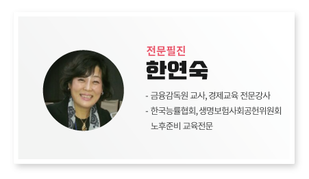 경제활동을 시작하는 시점부터 전문가들이 권하는 1층은 국민연금, 2층은 퇴직연금, 3층은 개인연금, 4층은 주택연금, 5층은 부동산 월지급식 연금이 필요하다. "국민연금으로 쌀을 사고, 퇴직연금으로 반찬을 사고, 개인연금으로 편히 살 생각을 하라." 투자전문가들이 연금을 두고 하는 말이다. 국민연금과 퇴직연금만으로는 우리가 원하는 노후가 아닌, 먹고사는 생활만 가능한 노후가 될 뿐이다. 혹시 개인연금이 준비가 안 되어 있으면, 즉시연금보험을 생각해보면 좋을 듯하다. 연금에서 유의사항으로는 국민연금의 연금시기와 수령 20년이 넘지 않으면 감액노령연금을 수령할 수는 있으나, 지급률이 완전노령연금보다 낮다. 본인 유고시에 유족이 받게 되는 유족연금도 기본연금액의 50%밖에 수령을 못하니, 소득이 없더라도 유예할 수 있는 기간이 있으니 가입기간을 늘려 국민연금 납부자의 평균 납부액만큼만 납부하는 상식 정도는 알고 있어야 한다. 특히 여성의 경우는 임의 가입자로 가입할 수 있으니, 꼭 가입해서 실질가치가 보장되는 연금 혜택을 받기를 꼭 당부한다. 퇴직연금과 개인연금까지 연간 수령액의 합산 금액이 1,200만 원을 초과할 경우에는 근로소득, 사업소득 등 여타 종합소득과 합산하여 종합 과세된다는 점에 유의해야 하며 연금저축상품은 금융기관 이전이 가능하니 은행에 가면 은퇴 노후 설계 전문가가 따로 있으니 자세한 상담을 권한다.