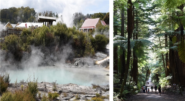 ▲로토투아 유황온천(좌), 레드우드 숲(우)