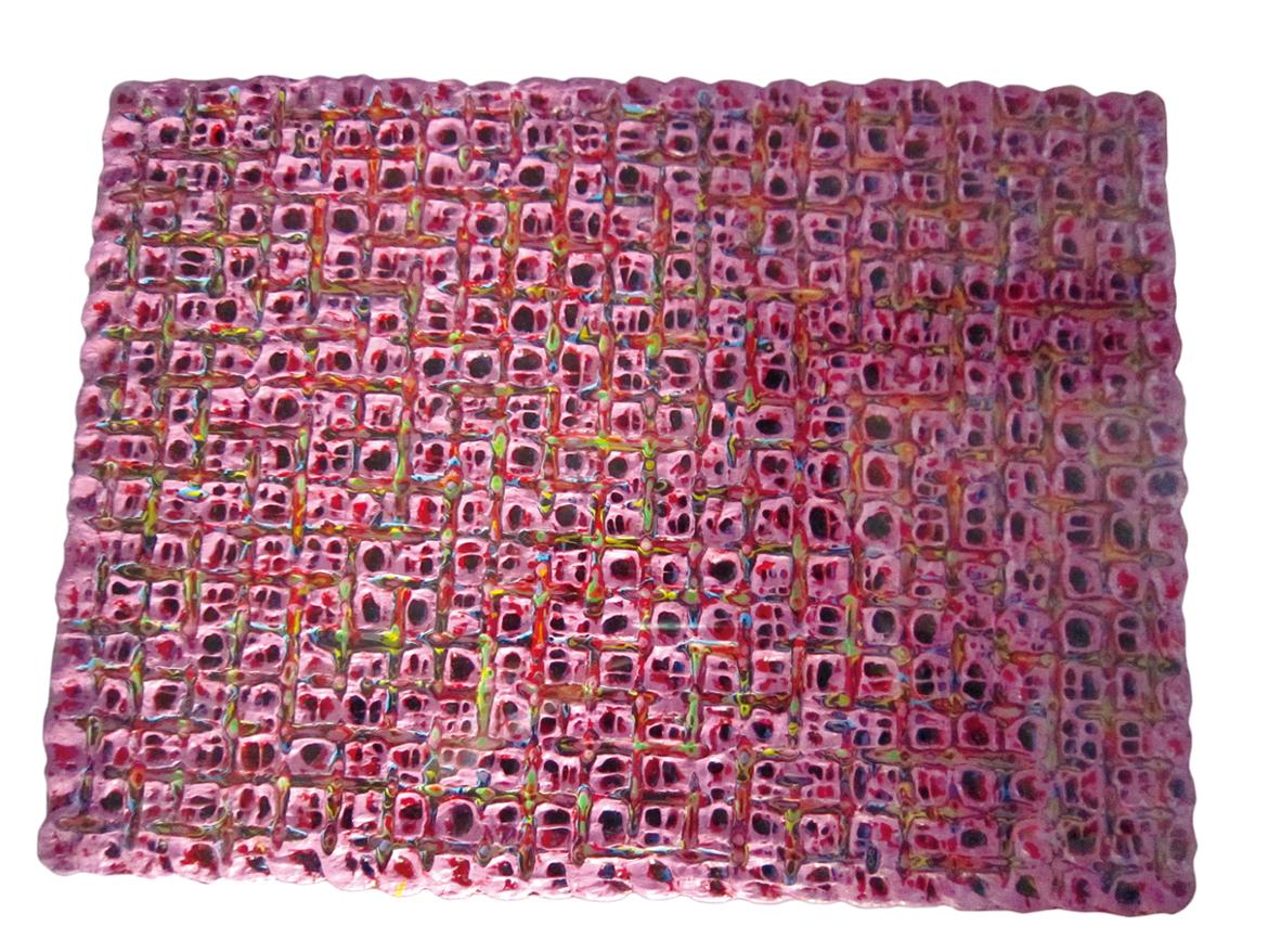 작가는 “타이틀이 왜 내재율이냐?”는 질의에 “광부가 채광해서 귀금속을 발견하듯 표면의 물질을 깎아내 찬란한 재료를 얻음으로써 마음의 진동을 창출하는 것”이라며 웃을 뿐이었다. 서로 다른 색이 날줄과 씨줄로 천을 짜듯 하나하나의 그리드를 만들고 그들이 화폭 가득히 펼쳐진다. 바둑판 모양의 요철(凹凸) 공간이 수직과 수평의 입체감을 형성한다. 물감이 두께를 더하면서 그리드가 혹은 무너지고 혹은 일그러져 자연스레 화가의 손길을 느낄 수 있다.