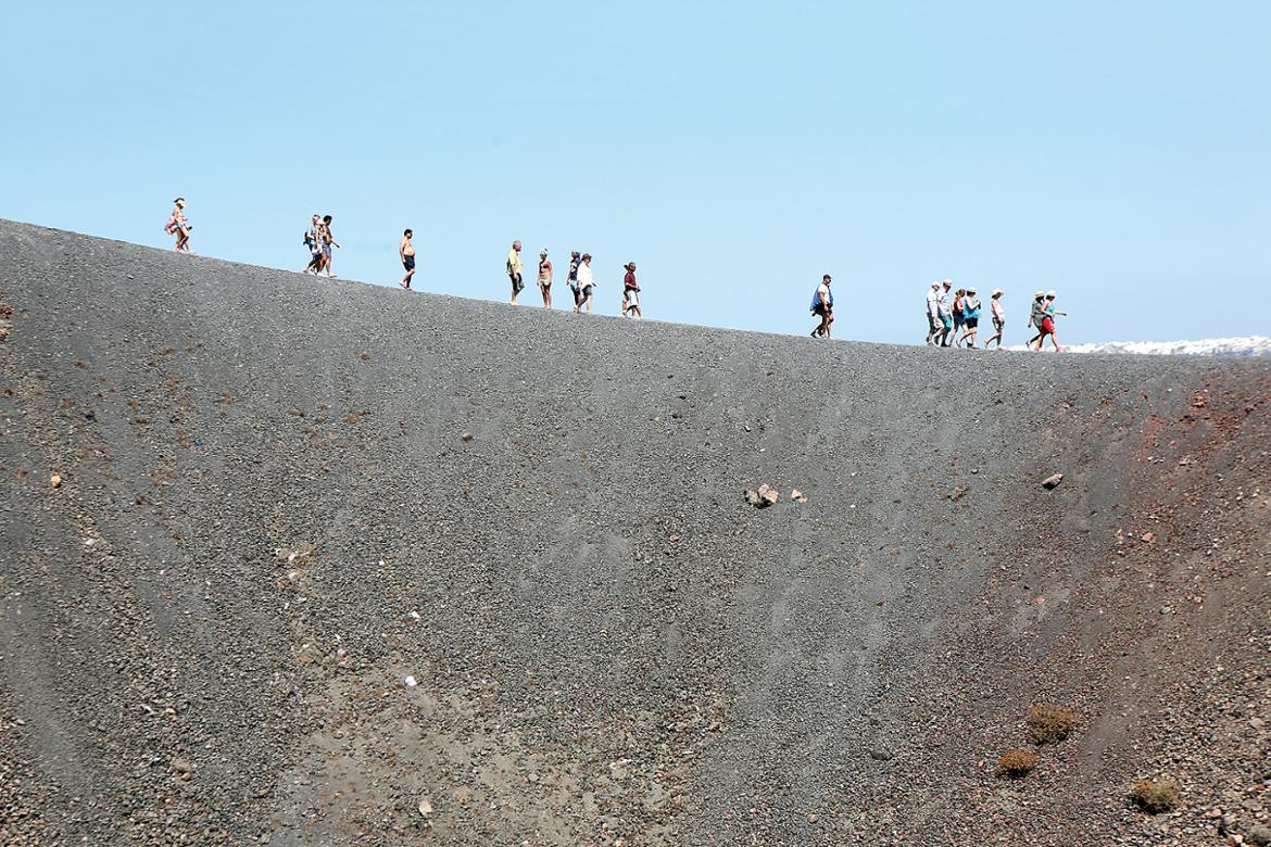 산토리니의 중심 도시는 피라다. 하지만 여행이란 ‘첫인상’이 참으로 중요하다. 피라 마을이 산토리니의 중심지라 해도 섬 끝의 이아 마을과는 비교할 수 없을 만큼 아름다움이 뒤떨어진다. 이럴 때는 먼저 ‘화산섬 보트 투어(Volcano Tour)’를 하는 것이 바람직하다. 대부분 마을 여행사에서 티켓을 판매하는데 1일 코스를 이용하면 된다. 아티니오스 신항구나 피론(Firon) 구항구에서 배에 오르게 된다. 배는 가장 먼저 산토리니 서쪽에 있는 네아 카메니(Nea Kameni)와 팔레아 카메니를 간다. 나무 하나 없는 허허벌판의 척박한 화산섬의 돌멩이에는 아직도 지열이 남아 있다. 그다음 코스는 바닷속에서 용출되는 온천수에서 수영을 즐기는 것이다. 40도가 넘는 고온이다. 이어서 유인도인 티라시아(Thirasia) 섬에 다다른다. 배가 없으면 접근할 수 없는 작은 섬이지만 천혜의 매력을 갖춘 곳이다. 이 마을에서는 맛있는 해산물 요리를 먹거나 마을까지 올라서 멋진 전경 사진을 찍으면 된다. 이때 당나귀(동키)를 타보는 것도 재미가 쏠쏠하다. 화산섬 보트는 이아 마을을 잇는 항구에서 내릴 사람에게 선택권을 준다. 대신 저녁 8시에는 셔틀버스가 운행되고 있어서 숙소로 이동하는 데 전혀 부담이 없다.
