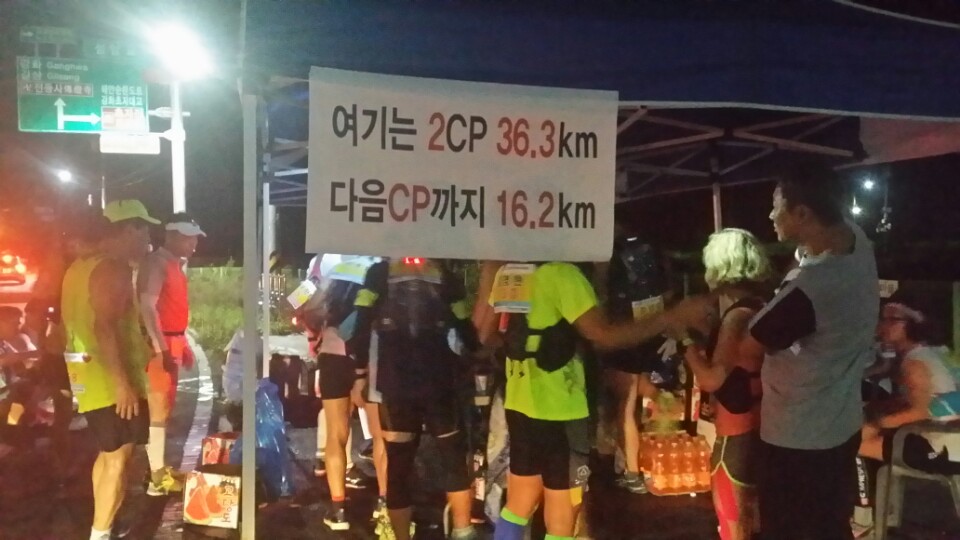 울트라마라톤 대회의 체크포인트. 간단한 먹거리를 먹고 쉬기도 한다.