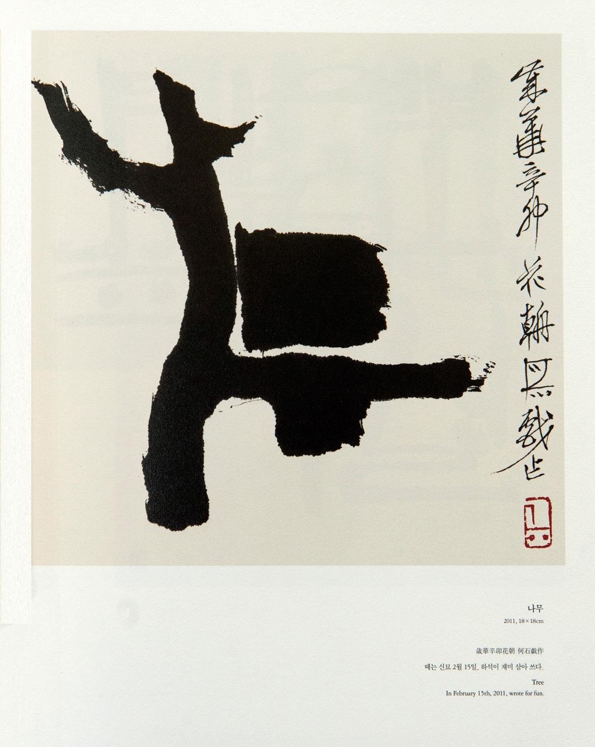 ▲하석 한글 작품 '나무' : 단어가 보이기 전에 한그루 소나무가 서있는 듯한 느낌을 준다.