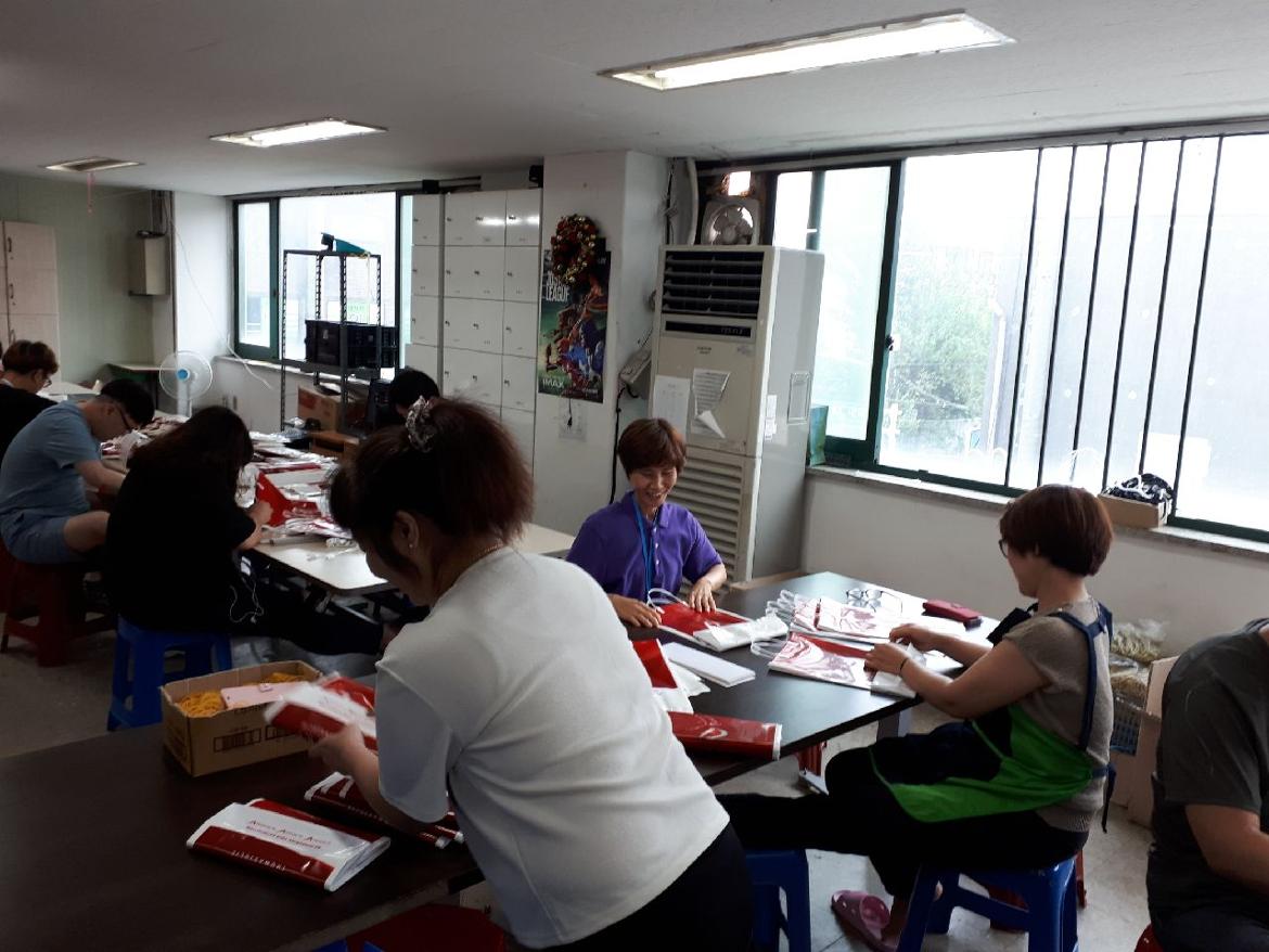‘행복을 파는 장사꾼’에서 근무하는 근로자의 대부분은 20~40대의 발달장애청년들입니다. 신체적으로는 비장애인과 다를 바 없지만, 지적능력이 다소 낮거나 편마비장애(일부의 팔, 다리, 손가락, 발가락 관절 등의 장애)가 있기도 합니다. 또한 다른 장애를 지닌 부모를 부양하거나 시설에서 생활하는 분들에 이르기까지, 다양한 환경의 발달장애청년들이 한 공간에서 작업을 하는 곳이에요. 직업재활지원자로서 발달장애청년들이 무사히 작업을 이어갈 수 있도록, 손길이 필요한 모든 부분을 지원해야 한다고 생각합니다. 업무를 분야 별로 구분하지 않고 모든 분야에 걸쳐, 발달장애청년들의 작업장 활동을 돕고 있습니다.