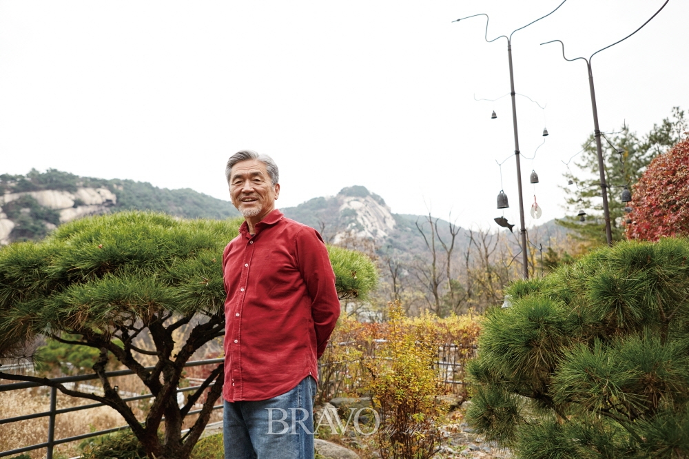 종로구 평창동 그의 자택 너른 창 앞이었다.