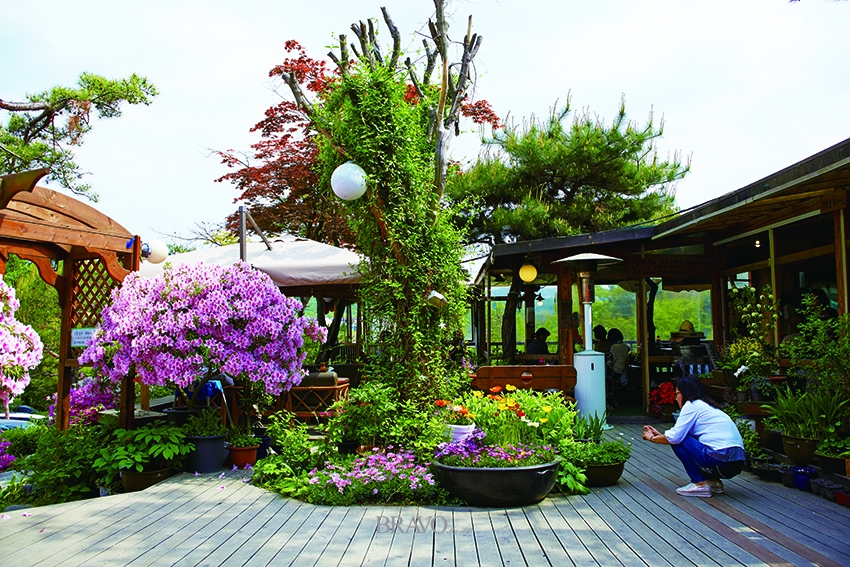 높은 빌딩이 시야에서 사라지고, 까만 아스팔트 도로가 끝나면 흙과 나무, 파란 하늘이 조화를 이룬 ‘산촌보리밥’을 만날 수 있다. 식당 입구에 들어서기도 전에 우거진 나무와 형형색색 꽃들에게 시선을 빼앗기고 만다. 맛집이라 해서 찾아갔지만 꽃 사진을 찍거나 나무 그늘에서 쉬는 이들이 더 눈에 띈다. 맛있는 밥을 먹으며 배도 채우고 자연을 벗 삼아 여유를 부릴 수 있는 공간이라는 점이 이곳만의 매력이다.
