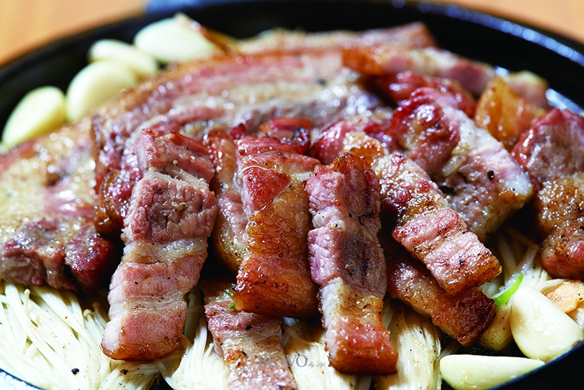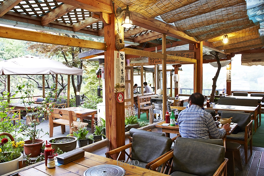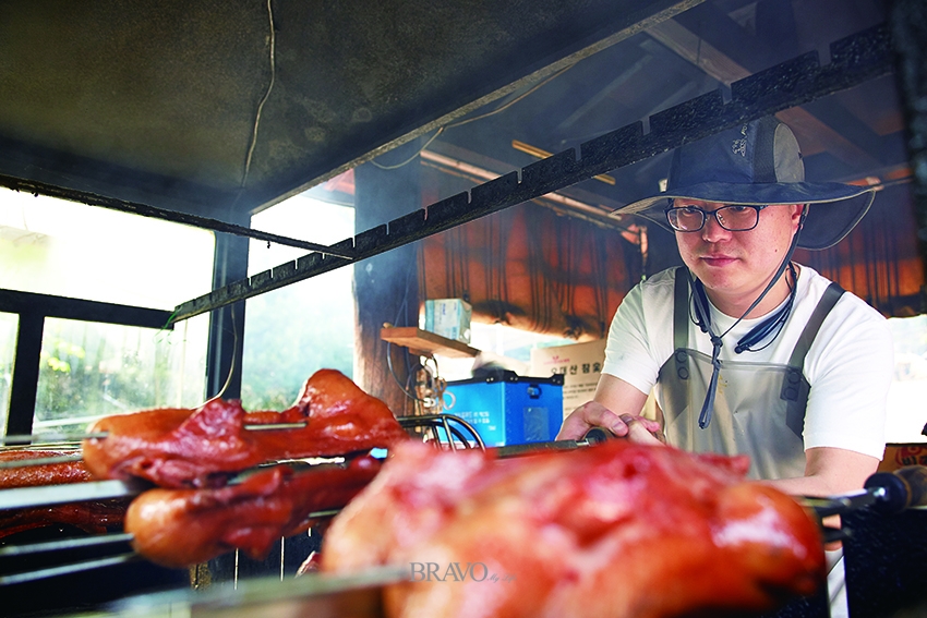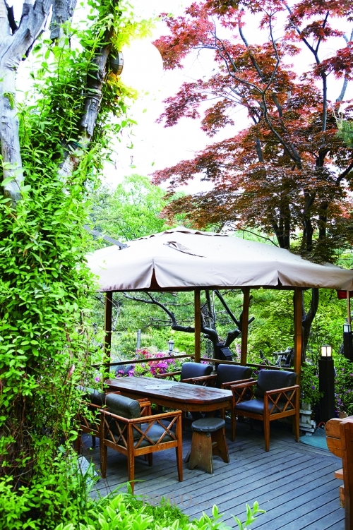장독을 모아놓은 곳 앞에서는 그윽한 숯 연기가 피어오른다. 참나무 장작 바비큐를 준비하기 때문이다. 주인장이 자부하는 구이용 숯은 향이 좋은 오대산 참나무를 사용한다. 국내산 생삽겹살과 오리에 신안 천일염을 뿌려 먹기 좋게 구워 낸다. 낮에는 쌈 채소와 함께 숯불구이 정식으로 맛보고, 저녁에는 야외 테이블에 앉아 단품(삼겹살 바비큐 400g-2만5000원, 오리 바비큐 한 마리 4만5000원/반 마리 2만5000원)으로 즐기기 좋다.