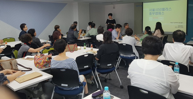 현재 중부캠퍼스에서는 2018 서울시 보람일자리사업으로 ‘50+컨설턴트’ 사업을 운영중이고