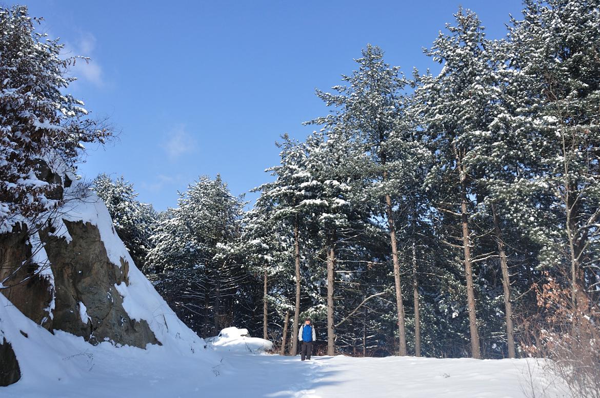 삼남지방으로 내려갈수록 바늘잎나무가 많다. 그렇다고 겨울마다 멀리 떠날 수 없을 수도 있다. 그렇다면 서울 근교에서는 어디가 적당할지 찾아보게 된다. 관악산은 대부분 소나무가 가득한 바위산이다. 그래서 한 겨울에도 푸른색을 발하는 아름다움을 볼 수 있다. 게다가 삼성산으로 들어서면 잣나무산림욕장이 호압사를 가운데 두고 양옆에 놓여있다. 겨울에도 이곳에서 쉬어가는 사람들은 제법 된다. 서울둘레길 관악산구간은 오르막과 내리막이 빈번하다. 겨울에 특히 장비를 챙겨서 가야할 곳이기도 하다.