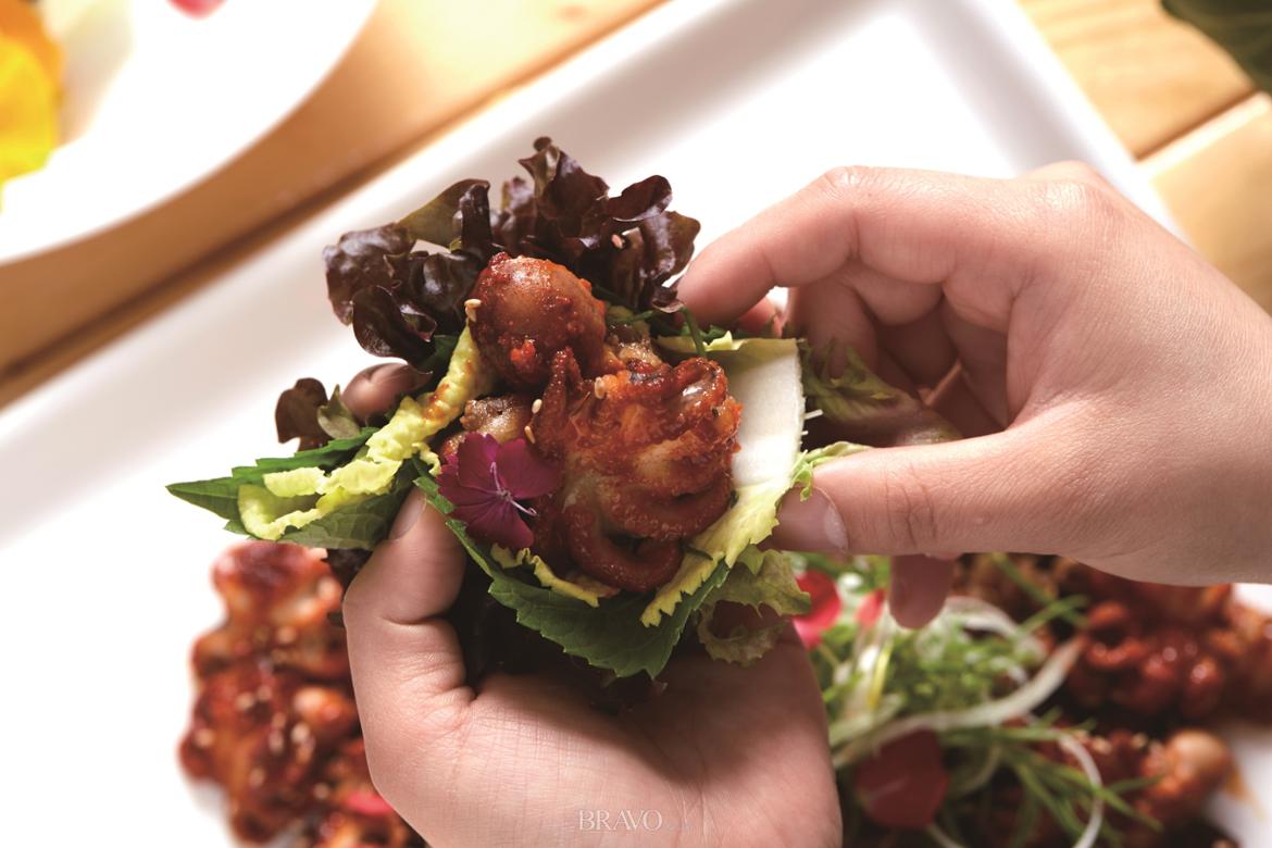 한식과 양식의 독특한 만남은 총괄 셰프인 조우현 대표가 있었기에 가능했다. 대한민국요리 대표팀 ‘수라’의 팀장이자 감독을 맡았던 그는 2009 아시아 컬리너리컵 대상, 2014 룩셈부르크요리월드컵 은상·동상을 수상하는 등 각종 세계요리대회에서 실력을 인정받았다. 조 대표는 “아무리 톱 셰프일지라도 고객이 만족하는 음식을 만들 수 없다면 최고라 할 수 없다”는 철칙으로 고객의 입맛을 사로잡고자 했다. 그렇게 다양한 시도를 통해 탄생한 것이 지금의 메뉴들이다. “주꾸미 집에서 파는 피자가 맛이 좋겠어?”라고 시큰둥하다가도 막상 먹어보면 여느 피자 전문점 못지않은 맛에 감탄하게 된다. 오히려 그보다 더 낫다는 생각이 들지도 모르겠다. 피자 반죽만 해도, 취나물을 갈아 넣어 숙성한 도우를 사용한다. 일반 밀가루 도우보다 영양분은 물론, 더 쫄깃하고 담백한 식감을 내는 것이 특징이다.