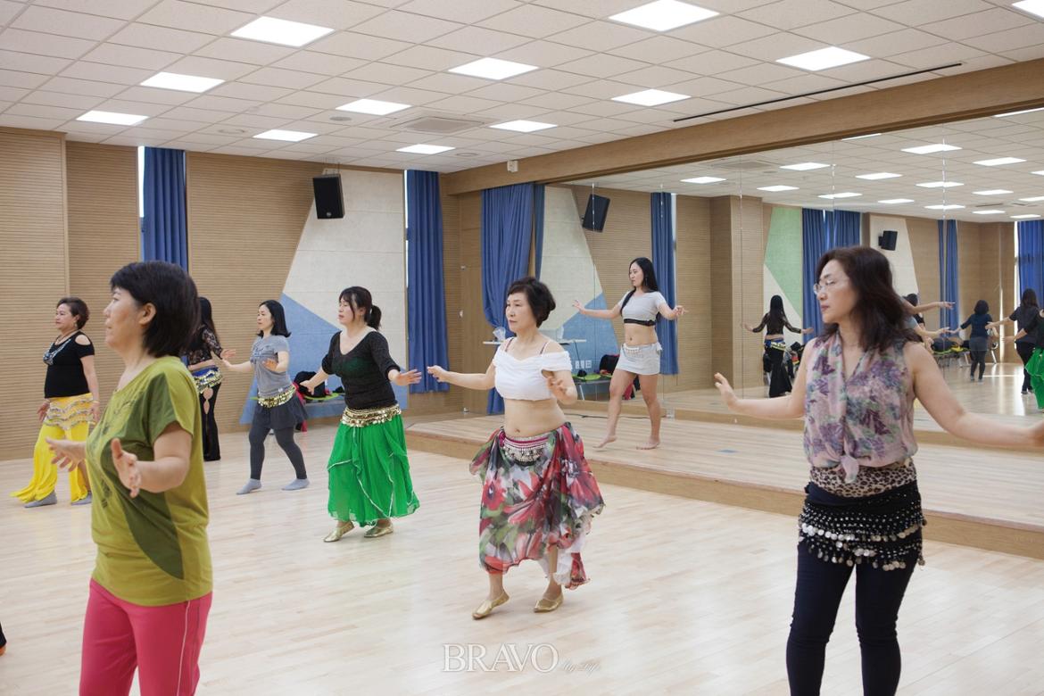 중급반 중에는 외부 공연은 물론이고 각종 벨리댄스 대회에도 참가해 우수한 성적을 거둔 동아리 팀도 있다. 벨리댄스 강좌가 개설된 지는 8년쯤 됐다. 주민문화센터 개관 전에는 주민센터에 마련된 공간에서 강좌가 열렸다. 희망하는 사람들은 3개월 단위로 수강신청을 할 수 있다. 여성에게 유익한 춤으로 소개되고 있는 벨리댄스는 여성이 갖고 있는 둥근 곡선의 아름다움이 강조된 춤으로 나이를 초월해 멋진 율동을 따라할 수 있다. 강사 최상미씨는 시니어 여성에게 벨리댄스를 권하는 이유에 대해 “복부와 골반을 자극하는 동작이 많아 장운동과 근육운동에 특히 좋다. 요실금이나 자세 교정에도 많은 도움을 준다”고 설명했다.