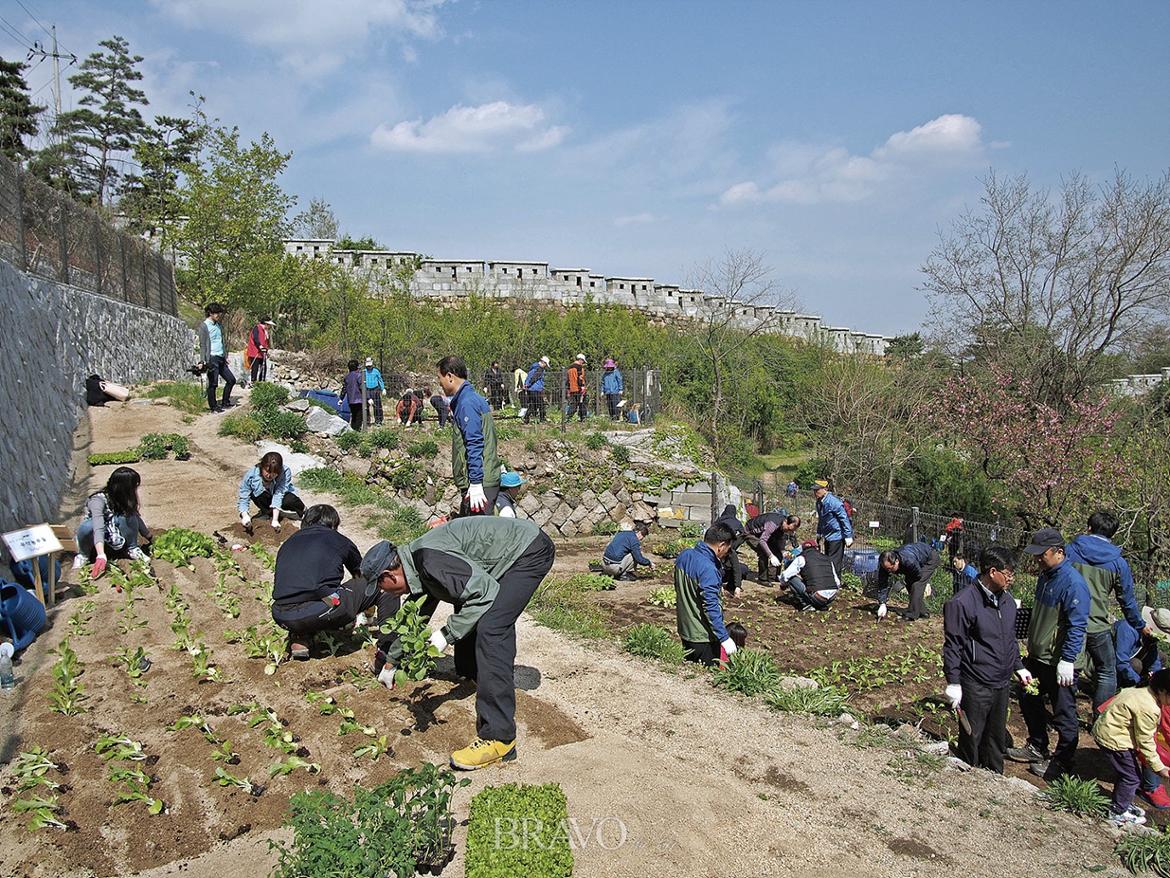 ▲파종시기를 맞아 진행됐던 성곽마을 텃밭 개장식. 많은 주민들의 자발적인 참여가 돋보였다