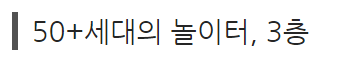 3층은 입구에 소개된 글처럼 50+세대가 스스로 만드는 공간, 도전과 실험, 일상의 리듬이 펼쳐지는 50+들의 놀이터.