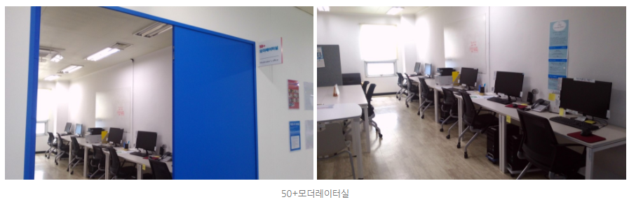 서로 모이고 대화하고, 회의하고 자료를 만드는 50+들의 업무공간이다.
