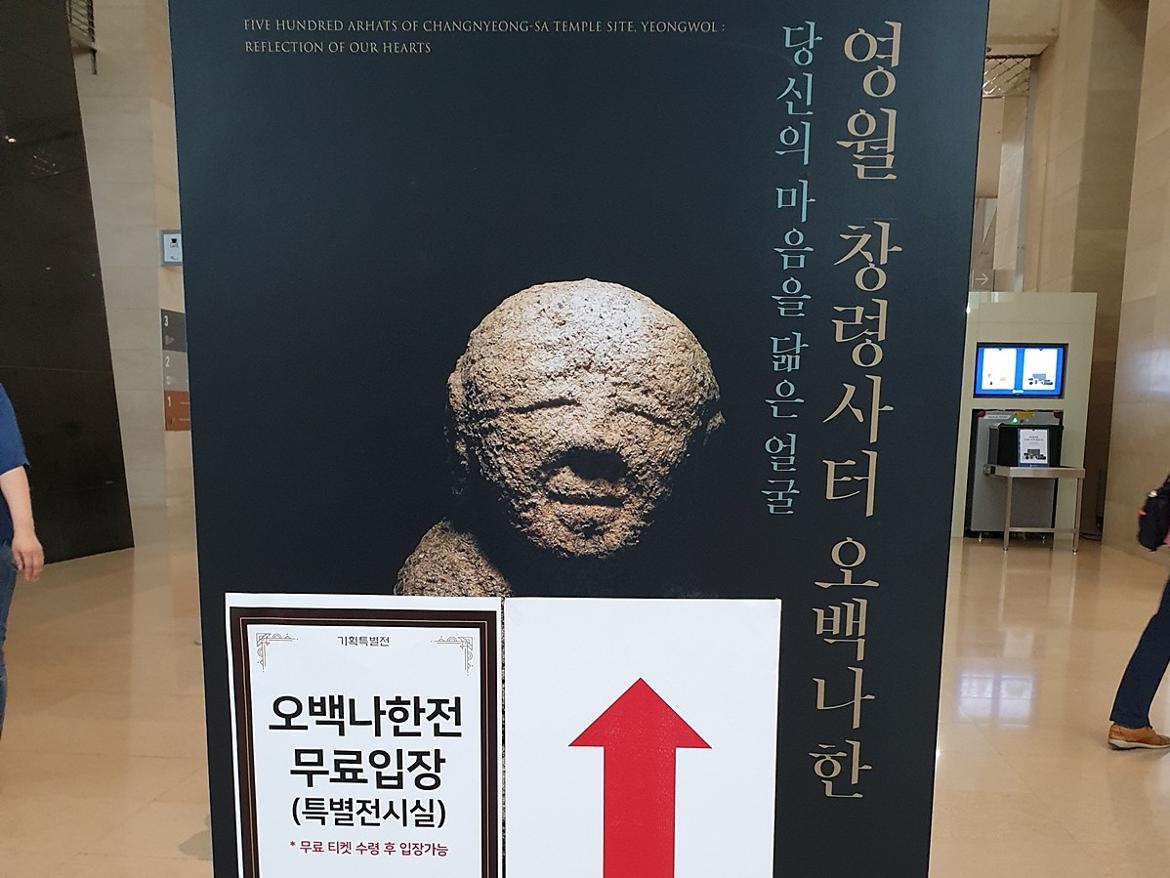 <당신의 마음을 닮은 얼굴 영월 창령사터 오백나한전>은 국립중앙박물관 1층전시관에서 진행됩니다. 본래 입장료는 삼 천원이지만, 방문당일이 현충일인 관계로 특별히 무료관람이 가능하다하니, 이게 웬 횡재인가 싶었습니다.