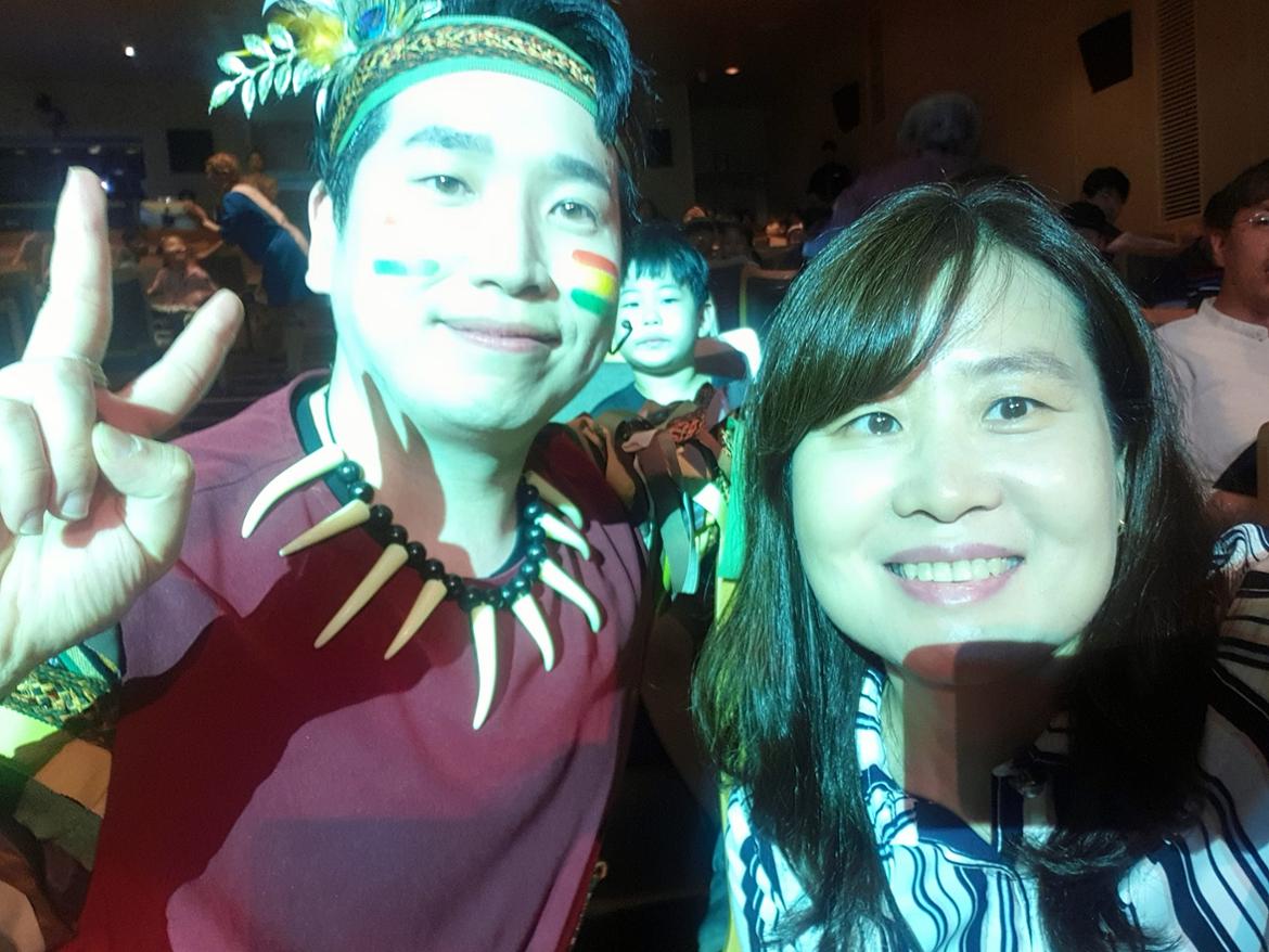 배우들은 경괘한 음악에 맞춰 춤을 추며 객석을 돌다, 기념사진을 위해 관객에게 포즈를 취해 줍니다. 저와 함께 사진을 찍은 이 배우는 용감한 전사 하쿠나입니다. 춤을 추며 제 앞을 지나 가는 배우님께 소심한 목소리로 ‘어른도 사진촬영 가능한가요?’ 라고 물었는데 선듯 옆에 와서 포즈를 취해 줬습니다. 생각보다 많은 시간을 포토타임으로 할애 해주었던 배우들의 팬서비스로 원하는 관객은 누구나 추억을 사진에 담을 수 있었습니다.