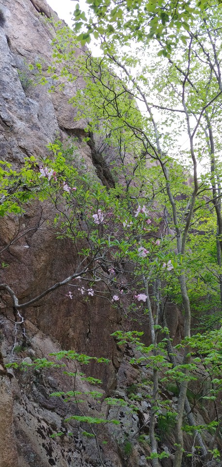 월출산의 정상 천황봉은 809m로 그다지 높지 않다. 하지만 바다에서 가깝고 드넓은 평야 한가운데 자리 잡고 있어 높이에 비해 등산하기 쉬운 편은 아니다. 산 능선을 따라 걷는데 산 가득 하얀 꽃이 피어 있다. 우리의 안내자 “인터넷검색” 선생에게 물으니 쇠물푸레나무라 알려준다. 월출산에는 애기붓꽃, 남산제비꽃 등등 여러 가지 야생화와 연분홍 자태도 고운 철쭉이 지천이다. 속세에서 흔히 보는 철쭉과는 사뭇 다른 수형, 진달래를 닮은 우아하게 뻗은 가지가 참으로 아름답다. 월출산에서 나를 가장 감동시킨 것은 노각나무였다. 나는 월출산에서 노각나무를 볼 수 있으리라 상상도 못했다. 한국 고유종인 노각은 선비 같은 나무다. 고매하다 못해 청초하기까지 하다. 그 노각 몇 그루가 등산로에서 사람들의 발길에 치이고 오르내리느라 잡은 사람들의 손길에 죽어가고 있었다. 마음이 저리도록 안타까웠다. 천황봉을 지나 구름다리 앞에서 잠시 쉬다가 우리는 바위에 서 있는 염소 같은 동물을 보았다. 까만 염소네, 산양이네 의견이 분분했으나 결론을 내리지 못했다.