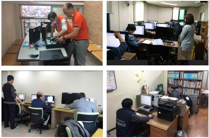 이후 9월에 신길사회복지관, 사랑채요양원, 도심권50플러스센터, 보현데이케어센터 등의 컴퓨터를 정비하러 다녔습니다. 이후 10월에도, 11월에도 매월 7~8곳의 비영리단체들의 컴퓨터와 네트워크 정비를 했습니다.