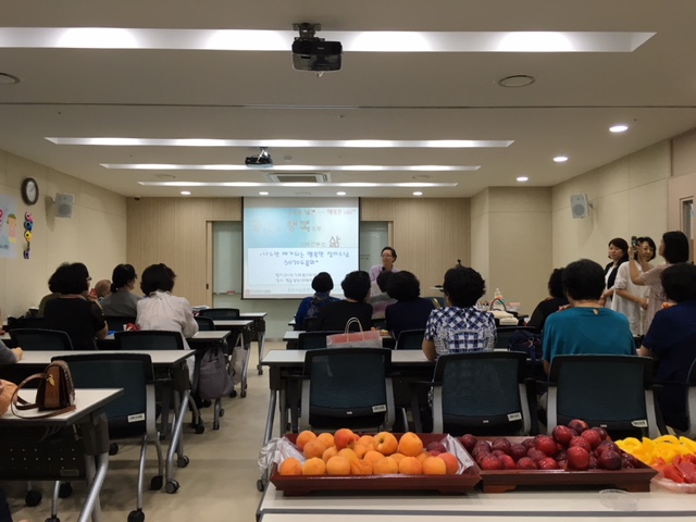 폭염의 여름 날씨에 딱 어울리는 건강간식이었다. 행사장이 수강생들로 가득 찬 상태에서 전복남 회장님의 인사말로 이날 행사가 시작됐다.
