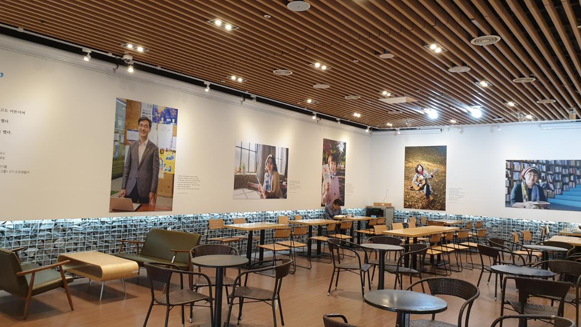 2층은 사무실과 강의실이 있고 3층은 50+세대들이 자유롭게 시간을 보낼 수 있는 <50+학생회관>이 있다. 마치 학창시절로 돌아간 느낌의 나무현판이 매력적이다.