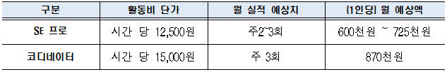 ㅇ 시간 당 단가를 적용하여 활동비 지급