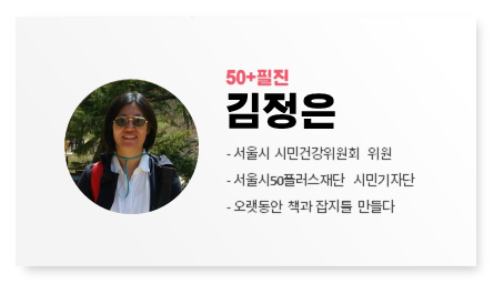 2017년부터 50+ 서부캠퍼스와 인연을 맺었습니다. 2017년 가을부터 협동조합 제대로 탐구하기, NPO 코디네이터 양성과정, 2018년 봄 사회적기업 핵심인재육성 프로젝트(2기)와 인생학교(5기)를 수료했습니다. 그때야 비로소 어떤 방향으로 나아가야 할지 길이 조금씩 보이기 시작하더군요. 그래서 SE펠로우(Social-Economy Fellow)를 거쳐 2019년 6월까지 ‘소셜 밸런스’에서 인턴으로 일했습니다. 그 경험을 바탕으로 앞으로 10년은 사회적 공헌을 위해 노력할 참입니다.