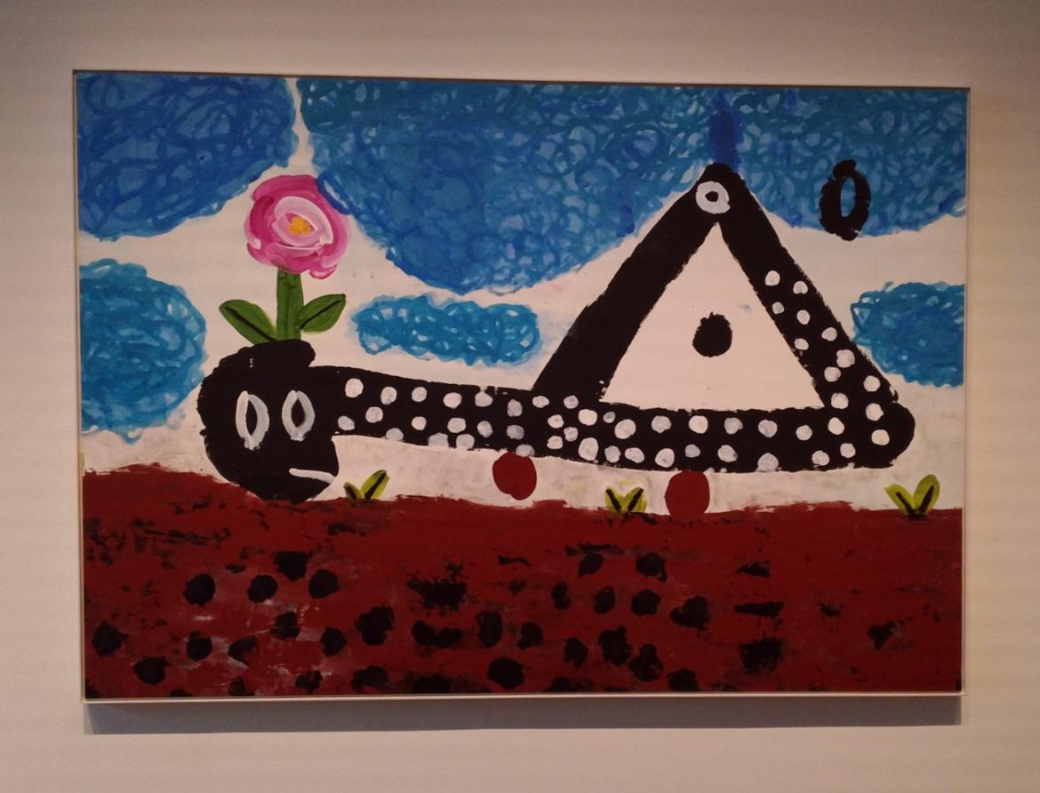 꽃이 피어난 어느 봄날, 꽃을 배경으로 애벌레가 새싹을 갈아먹고 있는 모습을 그린 “어느 봄날”은 자신의 성장을 위해 막 돋아난 새싹을 갉아먹는 애벌레를 표현했지만 밝고 산뜻하다. “뛰는 동물(1984)”, “큰 걸음(2019), 바다에 떠 있는 물고기라기보다는 UFO 같은 물체를 그린 ”큰 바다(1984)“ 같은 작품들은 작가의 자유분방함을 잘 드러내준다.