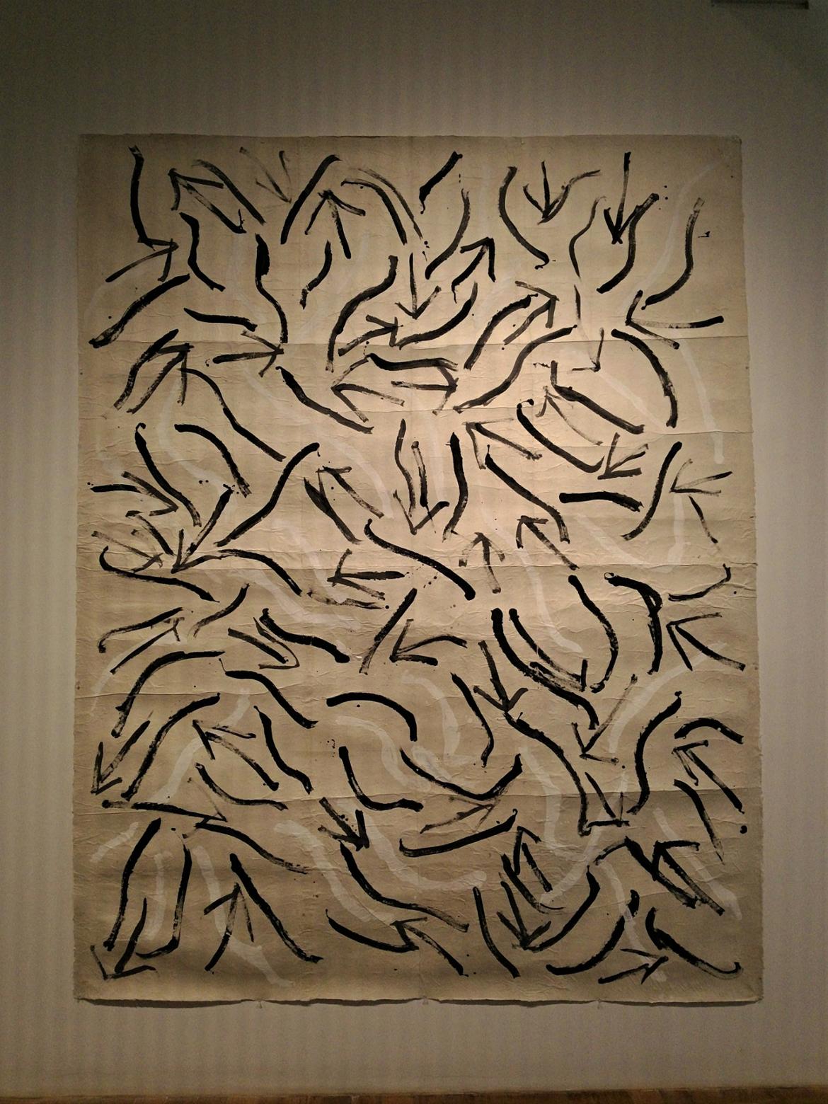 큰 붓으로 화살표와 선들을 그려놓은 “생명의 시초(1984)”는 마치 다른 작가의 그림을 보는 듯 익숙했다. 어느 시기에 비슷한 그림을 그린 작가들이 있었는데 노은님도 그런 경향의 그림을 그렸구나 생각했다. 나는 “나뭇잎배(1987)”라는 작품이 마음에 들었다. 작은 곤충이 나뭇잎을 타고 있는 모습이다. 배에 탄 곤충들의 표정이 어찌나 신난 개구쟁이처럼 보이는지 ‘뭐가 그리 재미있느냐?’고 ‘어디로 가느냐?’고 묻고 싶었다.