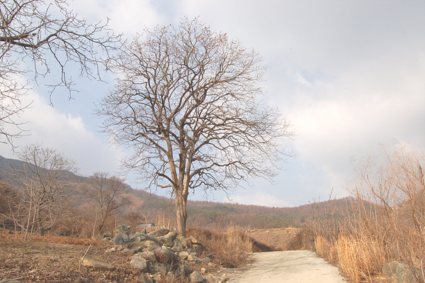 지리산 둘레길에서 흔히 볼 수 있는 풍경. 둘레길을 걷는 사람들에게 이정표가 될 만한 나무들이 이 길에서 자주 볼 수 있다